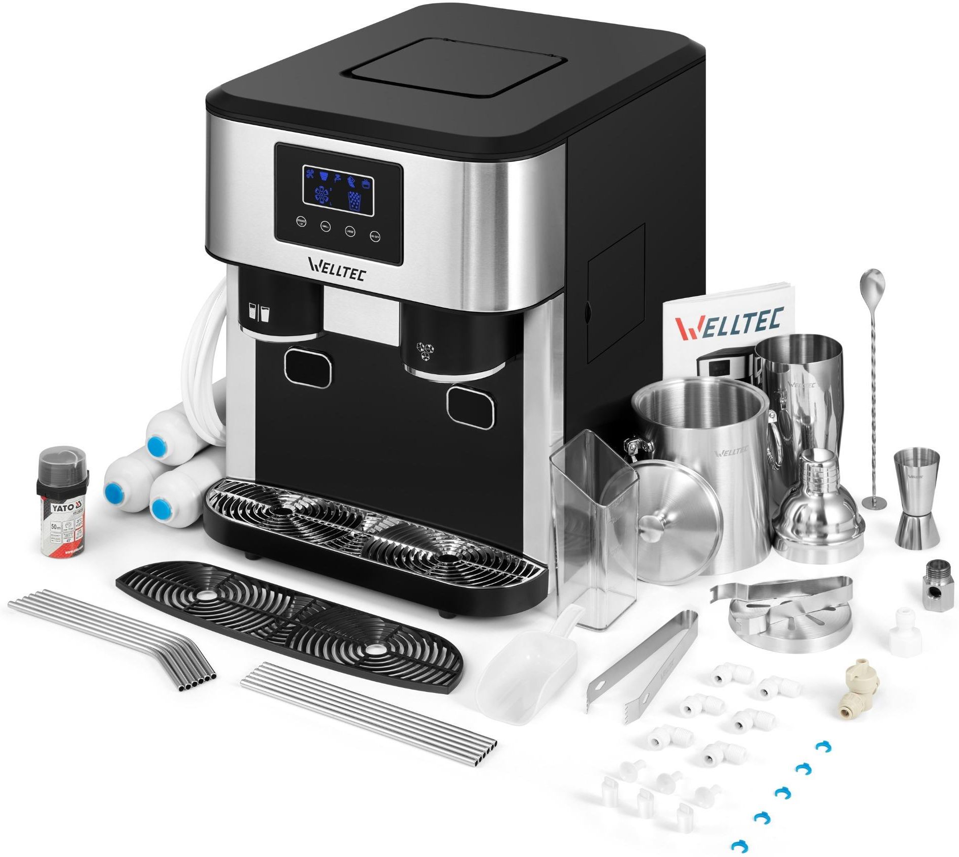 Kostkarki do lodu Welltec Kostkarki do lodu Welltec to bardzo wydajne, wielofunkcyjne urządzenia. Tworzą kostki lodu w dwóch rozmiarach lub kruszą je na drobne kawałki. Stanowią świetne rozwiązanie dla miłośników zimnych napojów i drinków w warunkach domowych. Są także niezbędnym wyposażeniem lokali gastronomicznych. Idealnie sprawdzą się podczas niewielkich przyjęć i dużych imprez. Spośród urządzeń wykorzystujących do chłodzenia powietrze, kostkarki do lodu Welltec to najmocniejsze i najwydajniejsze maszyny dostępne na rynku. Gwarantują błyskawiczne orzeźwienie w cieplejsze dni. Zalety kostkarki do lodu Welltec ICE20 Pro 5 lat przyjaznej, pro-Klienckiej gwarancji door-to-door 3w1 - kostkarka do lodu, kruszarka i dystrybutor schłodzonej wody duża moc - 380 W wysoka wydajność wytwarzania lodu - aż do 20 kg / 24h niski poziom głośności - min. 46 dB(A) pierwsza partia kostek zaledwie po 8 - 12 minutach w zależności od temperatury otoczenia 16 kostek lodu na cykl do wyboru 2 rozmiary kostek lodu pojemny zbiornik na wodę - 2l możliwość podłączenia stałego doprowadzenia wody o wydajności 2,2 l/min filtry do wody do stałego doprowadzenia w zestawie pojemny zbiornik na lód - 1l 3 sposoby podawania kostek lodu wygodny dostęp do zbiornika z lodem przezroczyste drzwiczki zbiornika na lód 2 dyspensery - kruszonego lodu / schłodzonej wody oraz kostek lodu przyciski dyspenserów uruchamiane za pomocą szklanki wyjmowana tacka ociekowa - dla wysokich szklanek dotykowy panel sterowania wyświetlacz LED alarm braku wody alarm pełnego zbiornika na lód funkcja zapamiętywania ustawień automatyczne wyłączenie naturalny czynnik chłodniczy R600a 23-elementowy zestaw wyposażenia urządzenia 18-elementowy zestaw akcesoriów barmańskich ze stali nierdzewnej certyfikaty CE i GS Kostkarka do lodu Welltec ICE20 Pro Welltec ICE20 Pro to kostkarka do lodu o nowoczesnym designie, wykonana z najwyższej jakości materiałów. Stylowy panel ze szczotkowanej stali nierdzewnej wraz z czarną obudową wpasuje się do każdego pomieszczenia. Kostkarka ICE20 Pro wytwarza nawet do 20 kg lodu na dobę. Aby powstała pierwsza partia kostek lodu wystarczy zaledwie 8 - 12 minut, w zależności od temperatury otoczenia i wielkości kostek. W jednym cyklu pracy urządzenie tworzy aż 16 kostek. Tak wysoką wydajność chłodniczą zapewnia silnik o mocy 380W. O przewadze kostkarki Welltec ICE20 Pro nad tradycyjnymi metodami tworzenia lodu decyduje zacznie większa szybkość działania i wysoka wydajność. Mrożenie wody w foremkach lub woreczkach jest procesem czasochłonnym trwającym nawet kilka godzin. Natomiast powszechne stosowane kostkarki umieszczane w lodówkach często są niewystarczające w czasie upałów lub dużej częstotliwości korzystania. Welltec ICE20 Pro tworzy aż 16 kostek lodu już w 8 minut co daje wydajność aż 120 kostek na godzinę. Welltec ICE20 Pro - funkcje ICE20 Pro to wszechstronne urządzenie 3w1 - jest jednocześnie kostkarką, kruszarką i dystrybutorem schłodzonej wody. Utworzone w jednym z dwóch rozmiarów kostki trafiają do szczelnego pojemnika który opóźnia proces ich topnienia. Można je wygodnie pobrać w całości lub drobno pokruszone po użyciu funkcji kruszenia lodu. Kostki można również w łatwy sposób przełożyć bezpośrednio ze zbiornika do innego pojemnika przy pomocy dołączonej do zestawu łopatki. Welltec ICE20 Pro - sposób działania Do wytwarzania lodu maszyna wykorzystuje wodę, w której zanurzane są specjalne foremki. Woda jest następnie schładzana przy pomocy powietrza generowanego przez sprężarkę wykorzystującą przyjazny dla środowiska, naturalny czynnik chłodniczy R600a. Po utworzeniu kostek lodu, są one wypychane bezpośrednio do zbiornika na lód o pojemności 1l. Maszyna wytwarza kostki lodu w sukcesywnie postępujących po sobie cyklach do momentu zapełnienia pojemnika na lód, wyczerpania się wody lub wyłączenia kostkarki. Welltec ICE20 Pro - dyspensery Urządzenie wyposażone zostało 2 dyspensery. Każdy z nich uruchamiany jest za pomocą przycisku, który można nacisnąć z użyciem szklanki po umieszczeniu jej pod dyspenserem: lewy dyspenser - umożliwia napełnienie szklanki skruszonym lodem lub zimną wodą prawy dyspenser - umożliwia podawanie kostek lodu bezpośrednio do szklanki Pod dyspenserem znajduje się tacka ociekowa chroniąca powierzchnię, na której ustawiono urządzenie przed wilgocią. W przestrzeni pomiędzy dyspenserem a tacką bez problemu zmieści się szklanka o wysokości do 17,5 cm. W sytuacji gdy chcemy użyć wyższej szklanki istnieje możliwość łatwego demontażu tacki, dzięki czemu można użyć szklanek o wysokości nawet 21,5 cm. W zestawie wraz z urządzeniem dostarczane są łącznie 2 tacki - w kolorze czarnym i srebrnym. Welltec ICE20 Pro - sterowanie Welltec ICE20 Pro wyposażony jest w dotykowy panel sterowania z wyświetlaczem LED. 4 przyciski znajdujące się pod wyświetlaczem umożliwiają włączenie i wyłączenie kostkarki, wybór między dużymi i małymi kostkami lodu oraz przełączanie lewego dyspensera pomiędzy funkcją kruszenia lodu, a funkcją dystrybucji schłodzonej wody. Wyświetlacz LED informuje w czytelny sposób o wszystkich aktywnych funkcjach i parametrach pracy urządzenia. Kostkarka do lodu ICE20 Pro wyposażona jest także w alarm braku wody w zbiorniku oraz alarm pełnego zbiornika na lód. Maszyna posiada również funkcję zapamiętywania ustawień, dzięki której po wznowieniu pracy zostaną zachowane ostatnie wybrane przez użytkownika funkcje. Welltec ICE20 Pro - uzupełnianie wody Kostkarka do lodu Welltec ICE20 Pro ma 2 sposoby uzupełniania wody - manualny i automatyczny. Manualny sposób polega na ręcznym uzupełnianiu dużego zbiornika na wodę o pojemności 2l. Do tego celu wykorzystuje się dołączony do zestawu pojemnik z miarką. Dzięki ręcznemu uzupełnianiu wody można w łatwy