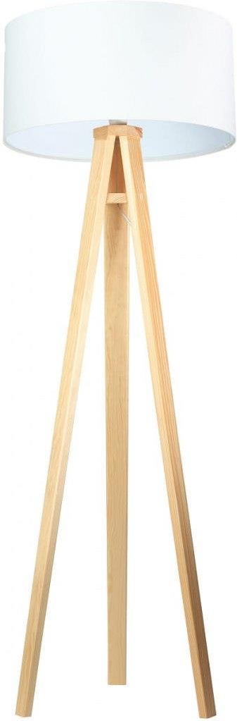 Lampa podłogowa welurowa biała 146 cm trójnóg Prosta, klasyczna i nowoczesna lampa podłogowa, to nieodzowny element wyposażenia każdego pomieszczenia. Pięknie się będzie prezentować zarówno w salonie, jak i sypialni, biurze, a nawet w przedpokoju. Abażur to białe tworzywo sztuczne PCV z tkaniną z zewnątrz pokryte wysokogatunkową tkaniną welurową odporną na działanie promieni UV. Podstawa lampy to naturalne drewno sosnowe. Każda lampa została zrobiona ręcznie z polskich elementów. Specyfikacja: materiał: tkanina welurowa, drewno, kolor abażura: biały, kolor podstawy: naturalny, wysokość całkowita: 146 cm, wysokość abażura: 25 cm, szerokość abażura: 50 cm, długość przewodu: 350 cm, źródło światła: 1xE27 max: 1x60W, możliwość stosowania żarówki LED i energooszczędnych.