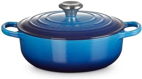 Brytfanna żeliwna garnek Le Creuset w kolorze lazur. Pojemność: 3,4 l Średnica :24 cm Gałki są odporne na wysokie temperatury (do 260°C) i zostały zaprojektowane tak, by zapewnić pewny chwyt przy podnoszeniu pokrywki, nawet w rękawicach. Duże uchwyty umożliwiają bezproblemowe przestawianie naczynia z kuchenki do piekarnika lub na stół, nawet w rękawicach. Naprawdę uniwersalne naczynie: używaj go w piekarniku, na kuchence, płycie indukcyjnej, a nawet pod grillem. Świetny smak jedzenia: żeliwo zatrzymuje ciepło, by potrawy gotowały i smażyły się równomiernie. Twoje pyszne potrawy dłużej pozostaną też ciepłe na stole. Zatrzymują wilgoć: nasze dopasowane pokrywki pomagają zachować wilgoć i uwydatnić smak, by jedzenie było idealnie ugotowane. Łatwe chwytanie: stylowe i wygodne uchwyty umożliwiają bezpieczne podnoszenie.