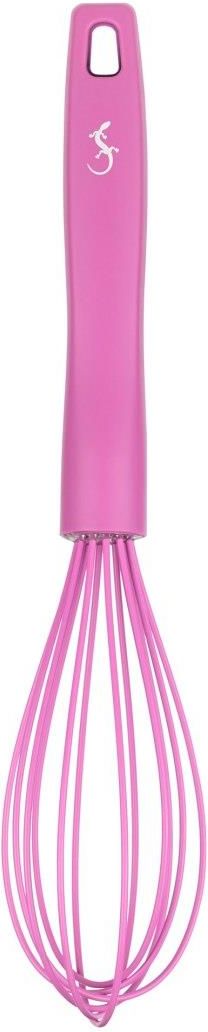 Lurch - wąska trzepaczka, silikon, 28 cm, różowa Smart Tools Wąska rózga do ubijania jajek i innych składników. * do ubijania śmietany i jajek, mieszania sosów i innych czynności kuchennych * dzięki małej średnicy może być wygodnie używana w kubkach i innych mniejszych naczyniach * rdzeń z wytrzymałego nylonu pokryty nierysującym delikatnych powierzchni silikonem * odporna na temperaturę do 240°C * można myć w zmywarce Wymiary: * długość: 28 cm * średnica: 5 cm Materiał: * nylon * silikon platynowy