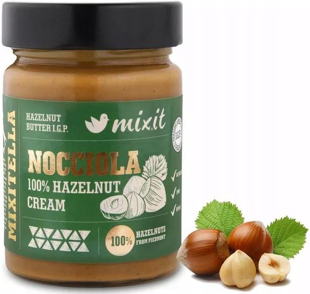 Mixitella Premium – Masło Orzechowe 100% Orzech Laskowy z Piemontu 300 g | Naturalny, Bez Dodatków, Kremowy Mixitella Premium – Czysta Rozkosz Orzechowa prosto z Piemontu! Poznaj Mixitellę Premium, czyli 100% prażonych orzechów laskowych z Piemontu I.G.P. – najbardziej cenionego regionu uprawy orzechów na świecie! Bez dodatków, bez cukru, bez oleju palmowego – tylko czysta natura i wyjątkowy smak. 🌿 100% naturalny skład – bez konserwantów i sztucznych dodatków 🌍 Produkt z certyfikatem I.G.P. – gwarancja pochodzenia orzechów 💪 Źródło zdrowych tłuszczów, błonnika i białka – idealny dla osób dbających o zdrową dietę 😋 Kremowa, aksamitna konsystencja – idealna do smarowania, dodawania do deserów i owsianek 🚫 Bez cukru, bez oleju palmowego, bez sztucznych składników Dlaczego warto wybrać Mixitellę Premium? Najwyższej jakości orzechy laskowe z Piemontu (I.G.P.) – niepowtarzalny smak i aromat Bez dodatku cukru i sztucznych słodzików – tylko naturalna słodycz orzechów Kremowa i aksamitna konsystencja – idealna do smarowania i gotowania Wielofunkcyjność – do deserów, musli, smoothie, naleśników i bezpośrednio łyżeczką! Bezglutenowy i wegański – idealny dla alergików i osób na diecie roślinnej Składniki najwyższej jakości 100% prażone orzechy laskowe z Piemontu (I.G.P.) – bez zbędnych dodatków! 💡 Może zawierać śladowe ilości innych orzechów, mleka, jaj oraz soi. Wartości odżywcze (100 g) Wartość energetyczna: 2847 kJ / 680,12 kcal Tłuszcz: 64 g (w tym nasycone kwasy tłuszczowe: 5,3 g) Węglowodany: 10 g (w tym cukry: 4,3 g) Białko: 14 g Błonnik: 9,7 g Sól: 0,01 g Jak najlepiej wykorzystać Mixitellę? Do smarowania pieczywa i tostów – pyszna alternatywa dla masła orzechowego. Dodatek do owsianek, jogurtów i smoothie – wzbogaca smak i dodaje wartości odżywczych. Do naleśników, gofrów i wypieków – naturalna, zdrowa słodycz. Jako zdrowa przekąska – prosto łyżeczką! 💡 Kup więcej i oszczędzaj! Skorzystaj z naszych rabatów przy zakupie większej ilości! Dlaczego warto wybrać Mixitellę Premium? 100% naturalnych składników – bez sztucznych dodatków Najwyższej jakości orzechy laskowe z Piemontu – z oznaczeniem I.G.P. Bez oleju palmowego i zbędnych konserwantów Aksamitna konsystencja i wyjątkowy smak Wielofunkcyjność – smaruj, mieszaj, rozkoszuj się! 👉 Nie czekaj – zamów teraz i rozkoszuj się smakiem włoskich orzechów laskowych w najczystszej postaci! 🛒