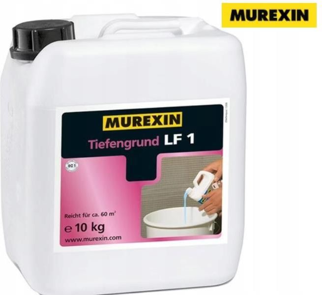Murexin LF 1 Grunt Podkład Penetrujący Do Chłonnych Podłoży Niebieski 10kg Głębokopenetrujący, bezrozpuszczalnikowy, preparat gruntujący na bazie dyspersji żywic syntetycznych przeznaczony do gruntowania chłonnych podłoży. Wyrównuje nasiąkliwość podłoża i powierzchniowo wzmacnia gruntowane podłoże. Dzięki niebieskiemu zabarwieniu umożliwia przeprowadzenie kontroli nakładania. Preparat o bardzo niskiej emisji lotnych związków organicznych – certyfikat GEV EMICODE: EC 1 PLUS. Posiada certyfikat niebieskiego anioła. Przeznaczony do gruntowania chłonnych podłoży przed użyciem zapraw klejących, zapraw wyrównawczych i szpachlowych oraz podpłytkowych izolacji Murexin. Do stosowania wewnątrz i na zewnątrz budynków. Właściwości : EC1 PLUS - bardzo niska emisja LZO barwiony na niebiesko bezrozpuszczalnikowy gotowy do użycia Zużycie: ok. 100-150 g/m²