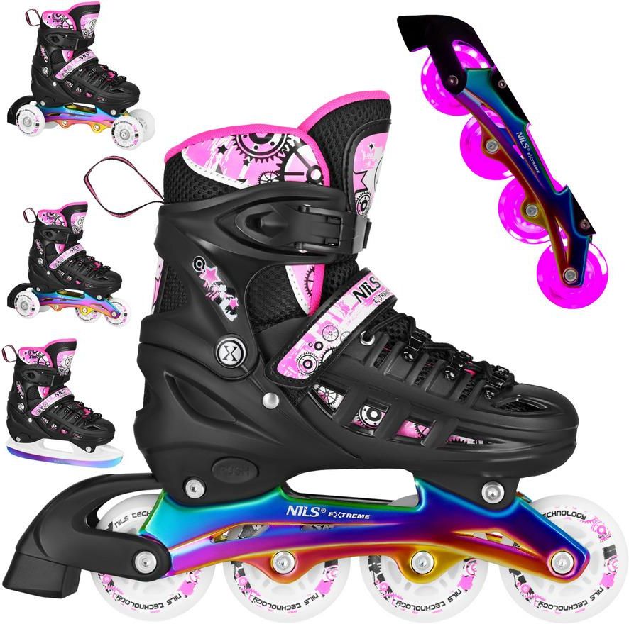 Nils Extreme Łyżwy Rolki Regulowane Led Dziecięce Hokejowe 4W1 Łyżworolki Kauczukowe Stepnica