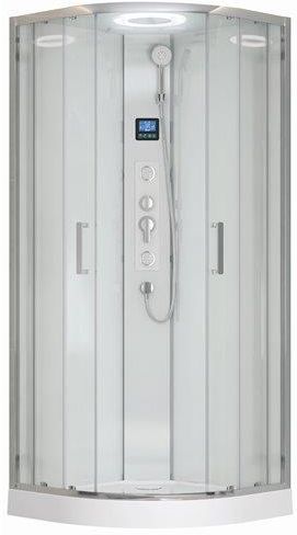 Kabina prysznicowa z hydromasażem Orion WH biała – 90x90 cm Nowoczesna, w pełni wyposażona kabina prysznicowa z hydromasażem Orion WH (biała) to idealne rozwiązanie do każdej łazienki. Model ten łączy estetykę, funkcjonalność i łatwość montażu, oferując przy tym komfort jak w domowym SPA. Najważniejsze cechy kabiny Orion Wymiary: 90 × 90 × 223 cm Wersja kolorystyczna: biała (WH) 2 dysze hydromasażowe – relaksujący masaż pleców Deszczownica sufitowa Ø 20 cm – przyjemne doznania wodne Słuchawka prysznicowa 3-funkcyjna Panel sterowania elektroniczny – intuicyjna obsługa Oświetlenie LED Bluetooth + głośnik – odtwarzanie muzyki bezpośrednio z telefonu Wentylator – poprawa cyrkulacji powietrza Solidna konstrukcja i wysokiej jakości materiały Szkło hartowane 5 mm (przód, dach) oraz 4 mm (tył, panel) Drzwi przesuwne, dwuskrzydłowe – płynna i cicha praca Profile aluminiowe, chromowane – odporne na korozję i wilgoć Brodzik akrylowy, biały – trwały, antypoślizgowy, łatwy w czyszczeniu Wysokość brodzika: 12,5 cm Szybki montaż – bez zbędnego silikonowania Kabina Orion została zaprojektowana z myślą o szybkim i czystym montażu: Elementy daszku i panelu – zmontowane fabrycznie Profile i łączenia pionowe – nie wymagają silikonowania Idealna zarówno dla profesjonalnych instalatorów, jak i użytkowników prywatnych