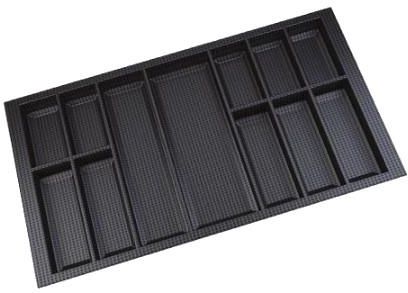 Wkład CLASSICO-Kristall 900/ wymiar 840 x 490/ czarny wkład na sztućce Wkład Classico na sztućce i akcesoria kuchenne w kolorze czarnym. Wkład pasuje do szuflad o szerokości frontu 900 mm i głębokości prowadnicy 500 mm. Wkład ma po szerokości i po długości szerszy zapas, który umożliwia samodzielne …