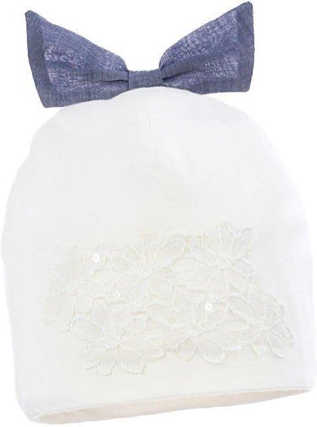 Pupill Flores czapka dla dziewczynki koronka bambus kokarda ecru Stepnica