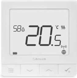 Salus Controls Regulator Temperatury Z Czujnikiem Wilgotności Akumulatorowy Sq610Rf Charakterystyka: Regulator Quantum SQ610RF to wyjątkowe urządzenie zaprojektowane tak, aby spełniało wiele funkcji, jednocześnie będąc wyjątkowo prostym w obsłudze i instalacji. Cechuje go niepowtarzalny, nowoczesny design wraz z zaspokojeniem potrzeb wielu klientów, a mianowicie bardzo cienki kształt. Regulator Quantum SQ610 został zaprojektowany z myślą o jak najprostszej obsłudze. Ilość kliknięć, które trzeba wykonać przy pierwszym uruchomieniu zredukowano do minimum - można zakończyć instalację nawet w 3 prostych krokach. Regulator może działać działać jako regulator systemu SALUS Smart Home i komunikować się bezprzewodowo z innymi elementami systemu. Dzięki przekaźnikowi beznapięciowemu w regulatorze SQ610 można sterować instalacją przewodowo. Dodatkowo istnieje możliwość kontroli przez Internet bez konieczności wymiany dotychczasowych urządzeń Komunikacja bezprzewodowa, praca w trybie offline/online, zasilanie akumulatorowe.  Do ogrzewania podłogowego, grzejnikowego, sterowania kotłem. Właściwości: Czytelny, podświetlany ekran Intuicyjne menu Czujnik wilgotności Tryb wakacje Personalizacja wyświetlanych informacji Ochrona zaworów Funkcja optymalizacji 22 wbudowane języki (w tym język polski) posiada możliwość przymocowania do ściany za pomocą wkrętów z kołkami lub za pomocą dedykowanej taśmy montażowej (akcesoria dołączone są do regulatora). Dane techniczne: Wbudowany akumulator Li-Ion 3,7V Napięcie ładowania(brak ładowarki w zestawie) Micro-USB 5V DC,min 0,5 A Zakres regulacji temperatury 5 - 40°C Dokładność wskazania temp. 0.5°C lub 0.1°C Algorytm sterowania ITLC Histereza (±0.25°C / ±0.5°C) Sygnał RF ZigBee 2,4 GHz Sposób montażu Natynkowy Temperatura pracy 0-45°C Stopień ochrony IP30 Wymiary [mm] 86 x 86 x 11 Grubość po montażu na ścianie 11mm