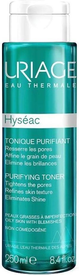 Opis: Uriage Hyseac tonik oczyszczający do cery tłustej i mieszanej Uriage Hyseac tonik oczyszczający to produkt kosmetyczny do pielęgnacji cery tłustej, mieszanej, skłonnej do trądziku i powstawania zaskórników. Złuszcza, matuje i redukuje niedoskonałości. .Składniki: Co zawiera tonik oczyszczający Uriage Hyseac? Ingredients: Aqua (Water, Eau), Alcohol, Glycerin, Glycolic Acid, Malic Acid, Sodium Hydroxide, Lactic Acid, Glycin, PEG-40 Hydrogenated Castor Oil, Pentylene Glycol, Lens Esculenta (Lentil) Seed Extracts,Parfum (Fragrance), Sodium Benzoate.Działanie: Właściwości produktu Tonik oczyszczający Uriage Hyseac sprawia, że skóra mieszana, tłusta ze skłonnością do niedoskonałości nabiera pięknego wyglądu, jest świeża, oczyszczona i nie błyszczy się. Matuje i eliminuje niedoskonałości - dzięki trzem mikro-złuszczającym kwasom (glikolowy, jabłkowy, mlekowy) wyraźnie poprawia strukturę skóry i eliminuje nadmiar sebum. Zwęża pory - działanie to zawdzięcza Pore-Refiner, zmniejsza widoczność porów. .Stosowanie: Jak stosować Uriage Hyseac, oczyszczający tonik zwężający pory? Nakładać wacikiem na oczyszczoną wcześniej skórę. Nie spłukiwać. Produkt zawiera kwasy AHA, należy zastosować ochronę przeciwsłoneczną przed ekspozycją na słońce..Dodatkowe: Nie stosować w przypadku nadwrażliwości na którykolwiek składnik produktu. Chronić przed dziećmi. Unikać kontaktu z oczami..