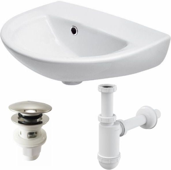 Umywalka ceramiczna wisząca president 45 cm bez otworu na baterie + syfon + korek Producent: Cersanit Model: K08-001^A430^XM-KK-W015-C-ZP Umywalka ceramiczna wisząca president 45 cm bez otworu na baterie + syfon + korek Umywalka wisząca PRESIDENT 45 zapewnia optymalne dopasowanie do wnętrza każdej łazienki. Model nie posiada otworu na armaturę. Umywalkę można montować z szafkami z serii BIANCO lub z ozdobnym syfonem bezpośrednio do ściany. Cechy umywalki: Szerokość: 44,5 cm Głębokość: 34,5 cm Kolor: Biały Kształt zaokrąglony Bez otworu na armaturę Otwór przelewowy Umywalka ceramiczna Cechy syfonu: Nakrętka do podłączenia spustu 5/4" Rura odpływowa – rozmiar 32 mm Cechy korka: Grzybek: duży Materiał: ABS Kształt: okrągły Wykończenie: chrom Przelew: tak