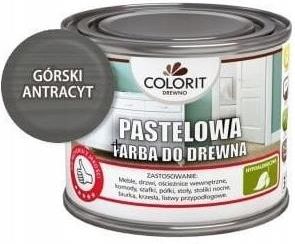 Colorit - Pastelowa Farba do Drewna Opakowanie: 375ml Aukcja dotyczy koloru: GÓRSKI ANTRACYT Farba przeznaczona do ochrony i dekoracji mebli oraz wszelkich elementów drewnianych lub drewnopochodnych. Do malowania mebli, futryn, elementów drewnianych wewnątrz domu. Nadaje drewnu aksamitne satynowe …