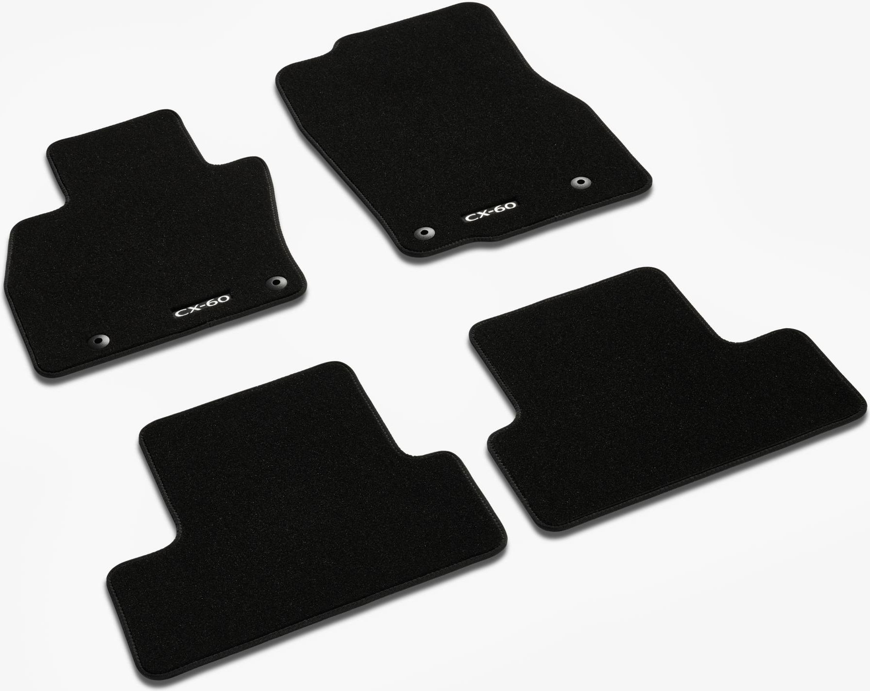 Komplet (4 sztuki) oryginalnych fabrycznie nowych dywaników welurowych (KR9P-V0-320) produkcji MAZDA dedykowanych do samochodów: MAZDA CX-60 - model KH Komplet - 4 sztuki Kolor - Czarny Materiał - Welur Gęstość materiału - 600g/m² Granulowana powierzchnia spodu dywaników, z oryginalnym systemem …
