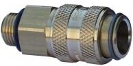 RECTUS seria 21KA z gwintem zewnętrznym 1/8" to szybkozłącze przemysłowe mini o najbardziej rozpowszechnionym profilu dla tej średnicy.Idealnie dostosowane do pracy w warunkach, gdzie miejsce nabiera szczególnego znaczenia. Ponadprzeciętny przepływ zarówno dla mediów płynnych jak i gazowych. Bardzo szeroki zakres materiałów i systemów zaworowych. Połączenie obsługiwane jest jedną ręką. Powszechnie stosowane w pneumatyce oraz transporcie cieczy, które cechuje wysoka jakość oraz małe rozmiary. ZASTOSOWANIE:Małe urządzenia pneumatyczne, roboty, pneumatyka, przemysłowe maszyny do szycia oraz produkcji opakowań, technika medyczna, systemyszkoleniowe, urządzenia oddechowe, wyposażenie nurka, technika pomiarowa, chłodzenie urządzeń spawalniczych, przenośne gazowe urządzenia grzewcze, analizatory, urządzenia dozujące. DANE TECHNICZNE: Medium Sprężone powietrze/inne gazy obojętne/woda Przepustowość [l/min] 560(ciśnienie wejściowe 6 bar, spadek ciśnienia 0,5 bar) Maksymalne ciśnienie robocze [bar] 35(współczynnik bezpieczeństwa 4:1) Temperatura robocza [oC]* -20 do +100 (uszczelnienie NBR)-40 do +120/150 (uszczelnienie EPDM)-15 do +200 (uszczelnienie FKM)-20 do +100 (uszczelnienie NBR) Siła łączenia [N] 35 (przy ciśnieniu 0 bar)60 (przy ciśnieniu 6 bar) Kompatybilność Camozzi / EWO / Kani Przyłącze [cal] 1/8"Z * przy temperaturze poniżej -20oC i powyżej +40oC specjalne uszczelnienia dostępne na zapytanie.