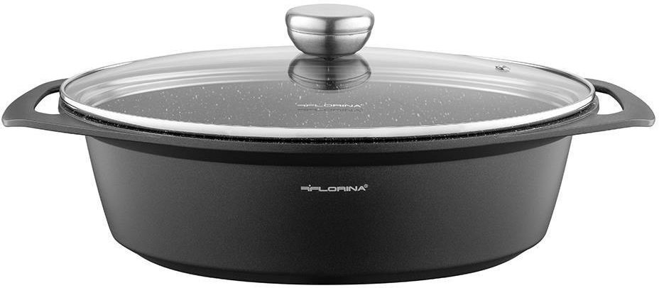 FLORINA Brytfanna aluminiowa Chef owalna 33,5x25x9,8 cm 3,8L EAN: 5907758693193 Seria: Chef Owalna brytfanna aluminiowa Florina Chef to kluczowy element wyposażenia dla pasjonatów gotowania, zarówno amatorów, jak i profesjonalistów. To naczynie niezwykle wszechstronne, które umożliwia pieczenie, zapiekanie, gotowanie, smażenie i duszenie dowolnych potraw, co sprawia, że jest niezastąpione w kuchni. Wykonana z wysokiej jakości aluminium brytfanna zapewnia wydajność gotowania. Jej szybkie i równomierne nagrzewanie się sprawia, że potrawy w niej przygotowywane są równomiernie upieczone. Wewnętrzna nieprzywierająca powłoka umożliwia gotowanie z minimalną ilością tłuszczu, zachowując jednocześnie wartości odżywcze potraw. Brytfanna wyposażona jest w kopulastą pokrywę ze szkła, co umożliwia monitorowanie procesu gotowania bez konieczności otwierania naczynia. Uchwyty, odlewane razem z korpusem, zapewniają wygodny chwyt i bezpieczne przenoszenie naczynia nawet z gorącymi potrawami. Dzięki temu produkt ten nie tylko ułatwia przygotowanie potraw, ale także zapewnia komfort i bezpieczeństwo użytkowania. Zalety brytfanny aluminiowej Chef marki Florina Wysokiej jakości aluminium dla wydajnego gotowania Nieprzywierająca powłoka wewnątrz naczynia Wielofunkcyjne zastosowanie: pieczenie, zapiekanie, gotowanie, smażenie i duszenie potraw Kopulasta pokrywa ze szkła dla monitorowania procesu gotowania Uchwyty odlewane wraz z korpusem dla bezpiecznego przenoszenia Rozmiar: 33,5 x 25 x 9,8 cm, pojemność: 3,8L