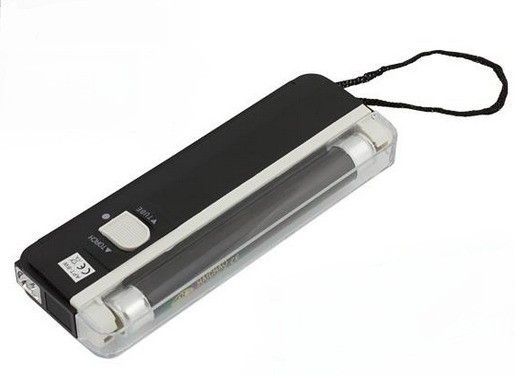 Tester banknotów Mini lampa ultrafioletowa UV - idealna do sprawdzania banknotów i dokumentów posiadających specjalne znaki widzialne w świetle UV. Cechy produktu Promiennik UV jest nieocenioną pomocą pomagającą rozpoznać fałszywe banknoty. Besprzewodowy tester UV, wyposażony w praktyczną latarkę diodową. Dołączony wygodny pasek na nadgarstek. Rodzaj lampy UV: F4 T5/BLB Wymiary: 162 x 55 x 23mm Opakowanie: kolorowe, estetyczne pudełko. Cechy produktu Promiennik UV jest nieocenioną pomocą pomagającą rozpoznać fałszywe banknoty. Bezprzewodowy tester UV, wyposażony w praktyczną latarkę diodową. Zasilanie: 3 x LR1130 ( w zestawie). Opakowanie: kolorowe, estetyczne pudełko.