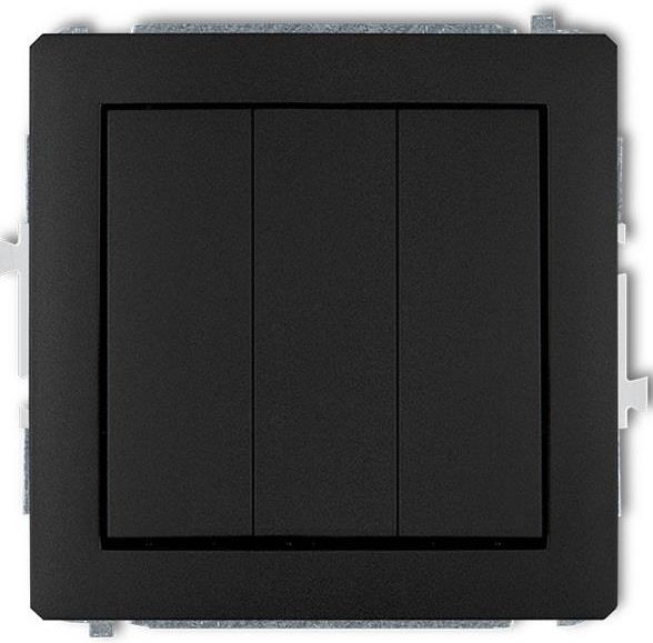 Łącznik potrójny Karlik Deco 12DWP-7 czarny mat Seria DECO składa się z różnych kategorii produktów od podstawowych łączników do skomplikowanej elektroniki. Mechanizmy spełniają ponad 80 różnych funkcji w zależności od potrzeb. Nowoczesne produkty w postaci łączników, gniazd pojedynczych, gniazd podwójnych, gniazd bryzgoszczelnych, gniazd abonenckich RTV i RTV-SAT, gniazd antenowych TV i SAT, gniazd telefoniczno-komputerowych, gniazd multimedialnych, regulatorów, sterowników, czujników i wielu innych podnoszą jakość Twojego życia. Bogata gama kolorystyczna 10 kolorów mechanizmów; 10 kolorów ramek uniwersalnych z tworzywa; 10 kolorów ramek wypełniających z tworzywa, niwelujących efekt odstawania osprzętu od ściany; 12 kolorów ramek uniwersalnych z tworzywa DECO Pastel matt; 10 kolorów ramek uniwersalnych z tworzywa DECO Soft, zapewniających idealne przyleganie produktu do ściany; 7 kolorów ramek uniwersalnych z efektem szkła; 3 rodzaje ramek uniwersalnych drewnianych; 1 rodzaj ramki uniwersalnej z efektem drewna; nieskończona ilość kolorów ramek uniwersalnych z efektem szkła DECO Art. Zalety techniczne mechanizmów gniazd i łączników serii DECO solidna konstrukcja (metalowa ramka montażowa) zapewnia odpowiedni montaż; zaciski śrubowe gwarantują pewne połączenie; niewypadające nakrętki przy zaciskach śrubowych; "jaskółcze ogonki" w kostce gniazda służą do pozycjonowania mechanizmów w poziomie przy układach wieloramkowych; solidne pazurki służące do pewnego mocowania osprzętu w puszce instalacyjnej; pazurki w pozycji neutralnej ułatwiają wprowadzenie mechanizmu do puszki. Schowane pazurki są chronione, aby uniknąć uszkodzenia izolacji przewodów i skaleczeń podczas instalacji; wszystkie gniazda serii DECO posiadają wbudowane przesłony torów prądowych, zabezpieczające dzieci przed dostępem do części niebezpiecznych instalacji elektrycznej. Gniazda serii DECO nie wymagają użycia żadnych dodatkowych, zewnętrznych zabezpieczeń; schemat podłączenia łącznika widoczny na kostce pozwala na prawidłowe podłączenie. Produkty serii DECO są perfekcyjnym dopełnieniem nowoczesnego wnętrza. Prosta, ponadczasowa forma, jakość wykonania, niezawodny system, to tylko niektóre z zalet kolekcji gniazd i łączników. Seria posiada ramki wielokrotne, uniwersalne - do poziomego i pionowego montażu mechanizmów. W połączeniu z atrakcyjnymi wariantami kolorystycznymi, daje nieograniczone możliwości w aranżacji każdego wnętrza.