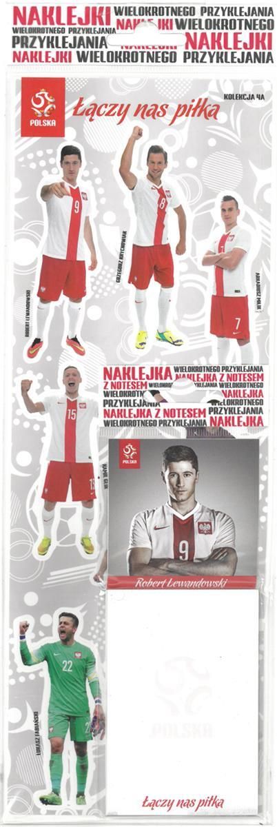 Średni Zestaw Naklejek z piłkarzami PZPN 1/2 A4 + notes Lewandowski(razem: 8 różnych naklejek + notes). Naklejki Folstick wielokrotnego użytku. Nie pozostawiają śladów po odklejaniu. Pasują na każdą gładką, suchą i czystą powierzchnię. Oficjalny produkt licencyjny PZPN - MACGRAF