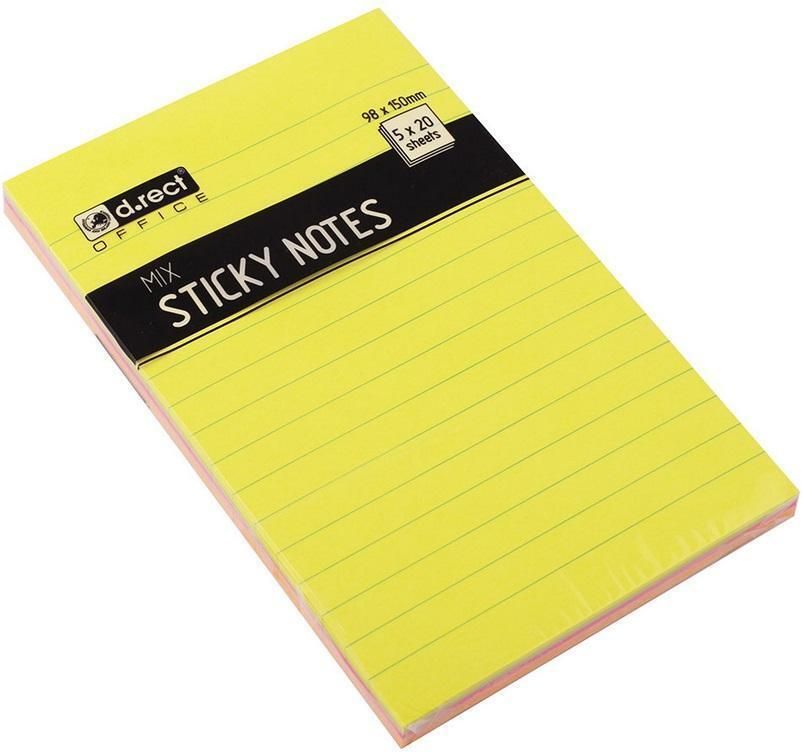 - w kadym zestawie 100 karteczek w linie - praktyczny notatnik z funkcj wklejania notatek w dowolne miejsce - klej umoliwiajcy wielokrotne przyklejanie i odklejanie pojedynczej karteczki - rozmiar: 98 x 150 mm - mix neon