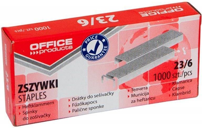 ZSZYWKI OFFICE PRODUCTS 23/6, 1000 SZTUK Najważniejsze cechy - Wykonane z wysokiej jakości stali galwanizowanej cynkiem - Ostre końcówki zapewniają łatwe i precyzyjne zszywanie - Wysoka twardość i odporność na odkształcenia - Zdolność zszywania do 30 kartek (80 g/m²) - Standardowy rozmiar 23/6 – …