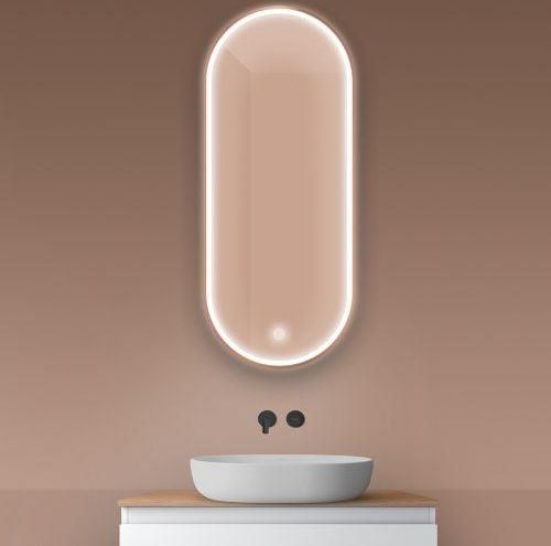 kolor: miedź szczotkowana wymiary: 50x120 cm klasa szczelności: IP67 klasa energetyczna: G możliwość powieszenia w pionie lub poziomie oświetlenie w formie paska szerokości 1,5 cm z przodu lustra barwa światła: 6500 K Montaż z matą grzewczą Szerokość 50 cm Wysokość 120 cm Oświetlenie z oświetleniem Kształt owalne Rama z ramą Gwarancja producenta: 2 lata Lustra Nordlis to połączenie minimalistycznego designu oraz najnowszych technologii. Wykonane są z wysokiej jakości tafli szkła, które są wyposażone w technologię automatycznego podgrzewania Klarglas, zapobiegającą zbieraniu się pary wodnej na jego powierzchni. Dzięki technologii Klarglas możesz cieszyć się pełną przejrzystością lustra, nawet w trakcie gorącej kąpieli. Lustra Nordlis wyróżniają się minimalistycznym, dyskretnym włącznikiem, po dotknięciu którego z łatwością możesz zmieniać intensywność światła. Regulacja intensywności pozwoli stworzyć w pomieszczeniu odpowiedni nastrój – przytulny, wyrazisty lub romantyczny. Taflę luster okala minimalistyczna rama wykonana z wysokiej jakości aluminium. Dla osób ceniących minimalizm dostępna jest opcja tafli bez ramy. Lustra Nordlis dostępne są w kształtach: okrągłym, owalnym i prostokątnym. Szeroka gama kształtów i kolorów pozwoli z łatwością wybrać opcję, która idealnie komponowała się będzie ze stylem Twojej łazienki.