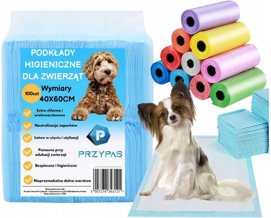 PODKŁADY DLA PSÓW HIGIENICZNE MATY 40X60 100SZT + WORECZKI NA PSIE ODCHODY 150SZT 🐾 ZESTAW DLA PSA: PODKŁADY CHŁONNE 40x60 cm (100 szt.) + WORECZKI NA ODCHODY (150 szt.) 🐶 🐕 Podkłady i woreczki na odchody – niezbędnik dla właściciela psa Ten zestaw to idealne rozwiązanie, jeśli chcesz zadbać o czystość i higienę psa oraz swojego domu 🏡. Podkłady chłonne 40x60 cm – idealne przy szczeniakach, treningu czystości i w podróży 🚗 Woreczki na odchody – zawsze pod ręką podczas spaceru 🐾 Zestaw ułatwia codzienność i zapewnia komfort Tobie i Twojemu pupilowi 💙 💧 Podkłady dla psa – 100 sztuk Podkład chłonny 40x60 cm – superchłonne, 5-warstwowe 💧 Idealne do nauki czystości szczeniaka 🐶 Podkłady dla psa odporne na rozerwanie – bezpieczne i praktyczne 💪 Niebieski kolor – estetyczny wygląd i łatwe odróżnienie 🟦 🐶 Woreczki na odchody – 150 sztuk Rolki z perforacją – łatwe odrywanie worków na odchody Woreczki na odchody mocne i grube – nie przeciekają i nie przepuszczają zapachów 🚫👃 Duży zapas – aż 150 sztuk, idealne na codzienne spacery 🌳 Worki na odchody pasują do standardowych etui 🎒 📋 SPECYFIKACJA ZESTAWU Podkłady dla psa:100 sztuk, wymiar 40x60 cm, kolor niebieski, 5 warstw, odporne na rozerwanie, superchłonne Woreczki na odchody: 150 sztuk, mocne, nieprzepuszczające zapachów, kolory wysyłane losowo 🌟 Dlaczego warto wybrać ten zestaw dla psa? Podkłady chłonne ułatwią naukę czystości i zabezpieczą podłogę 🏠 Woreczki na odchody gwarantująhigienę podczas każdego spaceru 🐾 Jeden zakup = pełen zestaw dla psa 🐕 Zawsze czysto, wygodnie i praktycznie 💙 🐾 Podkłady dla psa 100 szt. + woreczki na odchody 150 szt. – komplet, który sprawdzi się w domu i na spacerze!