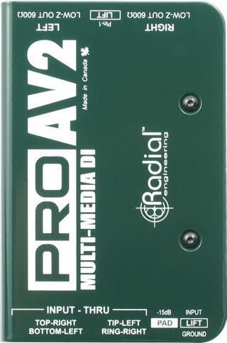 Radial Pro AV2 | Pasywny DI-Box, Stereo Passive Multimedia Direct Box ProAV2 to pasywny dibox stereo zaprojektowana dla integratorów audio-wideo i techników, z szeregiem opcji złącz wejściowych, umożliwiających łatwe połączenie z szeroką gamą urządzeń audio. Wszechstronny bezpośredni box stereo do …