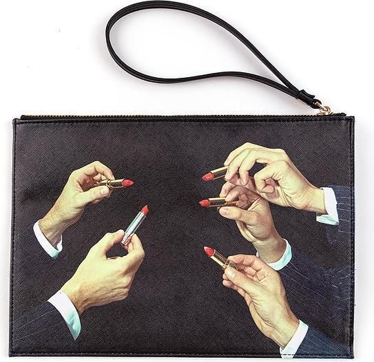 Główne zalety: oryginalne i ekstrawaganckie wzornictwo pasek na rękę ułatwiający przenoszenie kontrowersyjna grafika, która przyciąga uwagę przez cały czas część wyjątkowej kolekcji akcesoriów stworzonej we współpracy z twórcami włoskiego magazynu TOILETPAPER Dodatkowe informacje: wymiary: 28 x 3 x 20 cm materiał: poliuretan