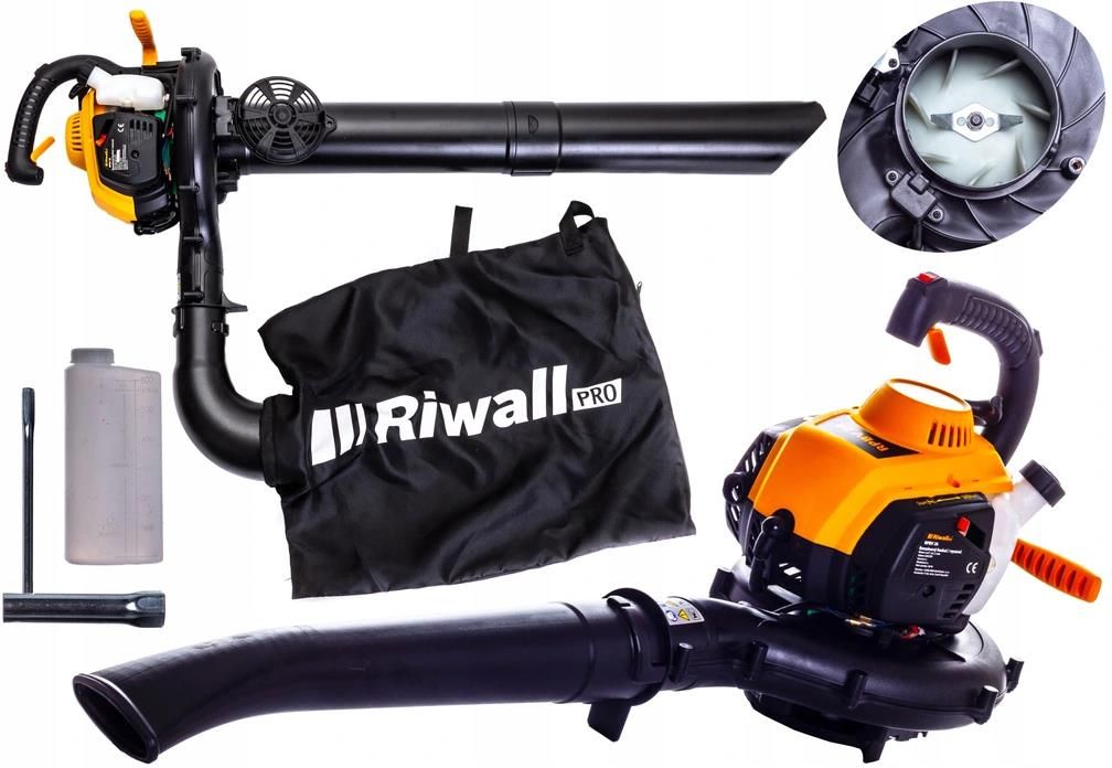 Wysokiej jakości odkurzacz/dmuchawa spalinowy 2W1 do liści czeskiej marki Riwall RPBV 26 lekka i bardzo łatwa w użyciu dmuchawa mocny silnik o mocy 1 KM / otwory chłodzące chronią silnik przed przegrzaniem idealny do pracy na dużych powierzchniach służy do zbierania, dmuchania lub gromadzenia …