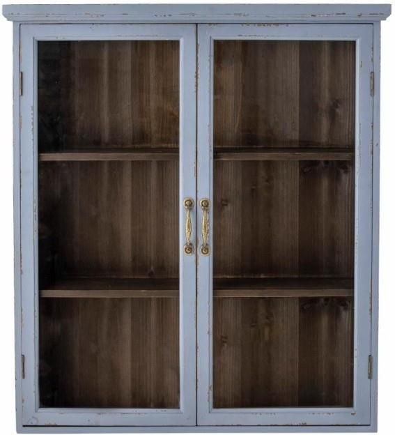 Szafka wisząca Hazem, to propozycja marki Bloomingville z kolekcji produktów Creative. Creative Collecton to produkty dekoracyjne, meble oraz lampy stylizowane, wykonane w charakterystycznym klimacie vintage. Szafka w kolorze jasnoniebieskim z przeszklonymi drzwiczkami wspaniale wyeksponuje przedmioty w niej przechowywane. Doskonale sprawdzi się w aranżacjach rustykalnych i vintage. Uchwyty szafki zostały wykonane z mosiądzu, a cała szafka z drewna jodły. Fronty szafki zostały poddane zabiegowi postarzania, co nadaje jej charakterystyczny klimat. Odległość pomiędzy półkami to 28 cm.