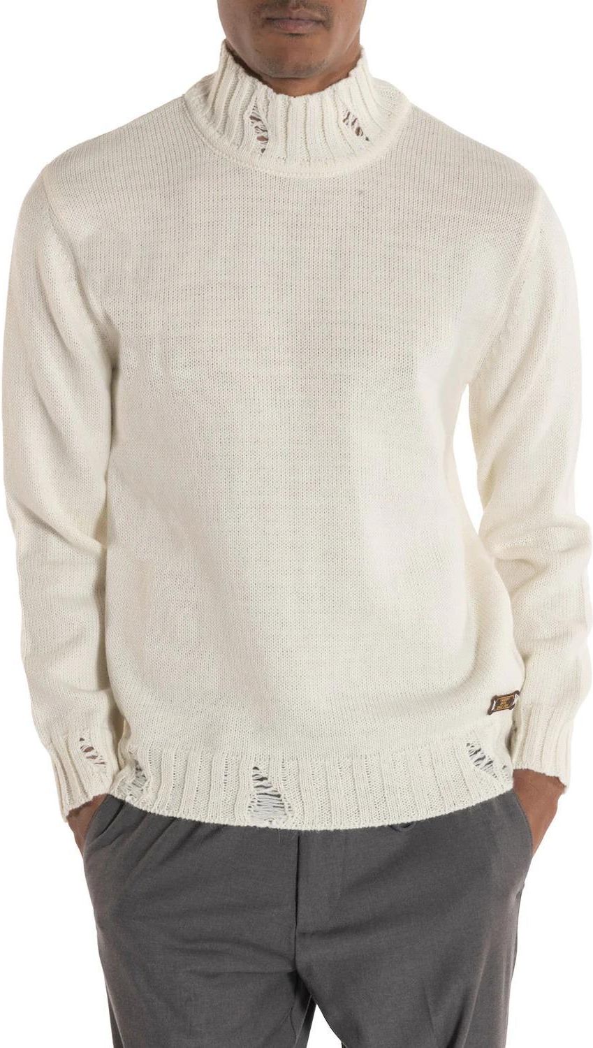 Prosty fason O warkoczowym splocie Z golfem Dekolt, rękawy oraz dół zakończone ściągaczem Z efektem zużycia i przetarcia Wykonany z wysokiej jakości dzianiny z dodatkiem wełny oraz wełny alpaki Wyprodukowano we Włoszech