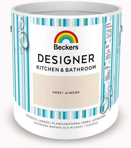 Opis produktu BECKERS DESIGNER KITCHEN & BATHROOM to wysokiej jakości, wodorozcieńczalna farba lateksowa, szczególnie polecana do stosowania w pomieszczeniach narażonych na rozwój grzybów pleśniowych, działanie wilgoci oraz pary wodnej występującej w kuchniach i łazienkach. Najwyższa klasa …