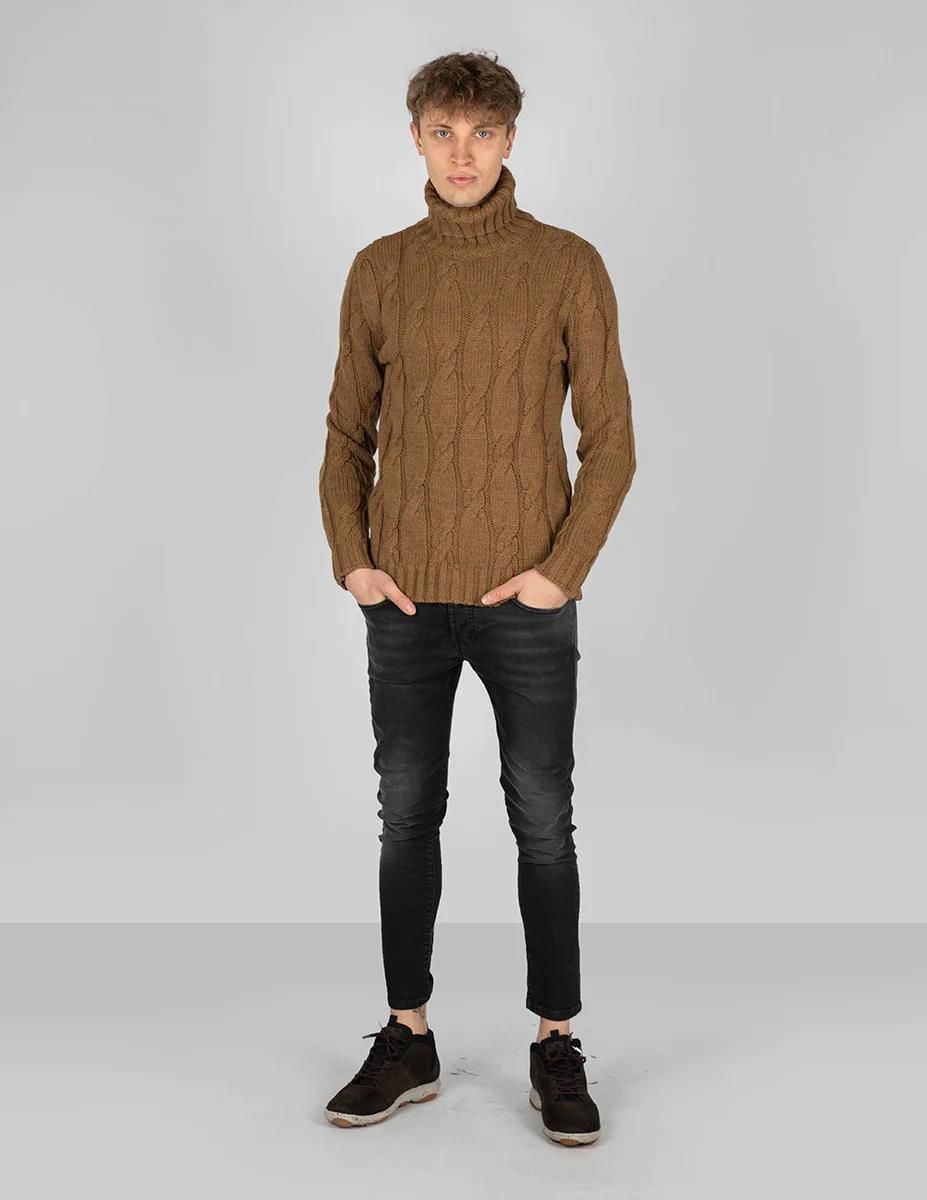 Prosty fason Z golfem Dół, rękawy oraz dekolt wykończony ściągaczem Wykonany z wysokiej jakości tkaniny z dodatkiem wełny Wyprodukowano we Włoszech