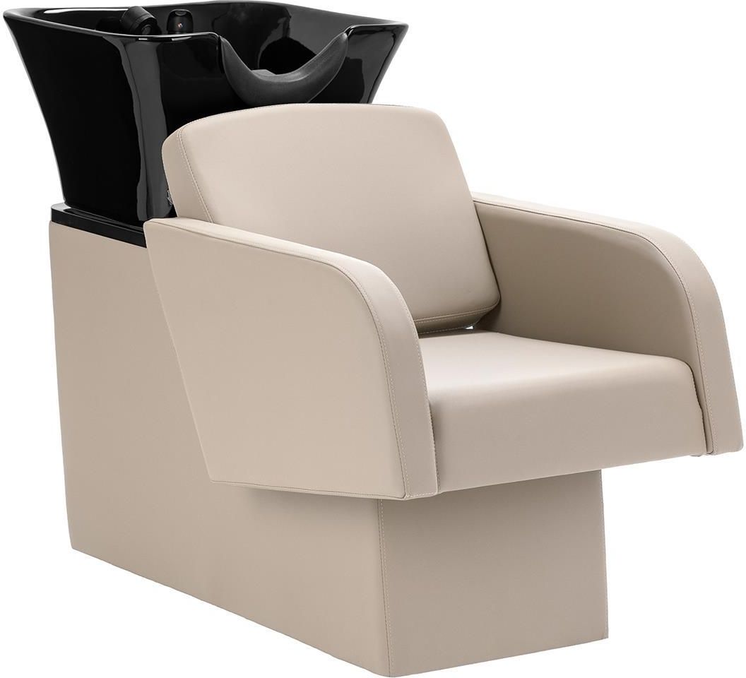 Gabbiano to luksusowa marka urządzeń oraz mebli fryzjerskich, którą wyróżnia niezawodność, jakość i estetyka wykonania oraz wysoki komfort użytkowania. W ofercie posiada duży wybór funkcjonalnych elementów wyposażenia salonu, takich jak fotele, myjnie czy infrazony. Niezbędny element salonu fryzjerskiego Elegancka myjnia fryzjerska Gabbiano Elda łączy funkcjonalność z nowoczesnym designem. Ułatwia sprawne wykonywanie podstawowych zabiegów – od wstępnego mycia, przez koloryzację, po regenerację włosów. Przemyślana konstrukcja zapewnia wygodę zarówno fryzjerom, jak i klientom, a stylowy design, eleganckie linie i nowoczesny kształt misy nadają wnętrzu wyjątkowy charakter, podkreślając profesjonalizm salonu i dbając o estetyczne wrażenie klientów. Gustowna umywalka dla komfortu użytkowania Ceramiczna misa umywalki w odcieniach czerni, o nowoczesnym kształcie i odpowiedniej głębokości, skutecznie zapobiega rozchlapywaniu wody oraz produktów używanych podczas zabiegów, umożliwiając komfortowe i efektywne wykonywanie szerokiej gamy usług. Odpowiednio wyprofilowany kołnierz oraz nachylone oparcie zapewniają wygodę i wsparcie podczas mycia włosów, a nakładka z tworzywa sztucznego w odcieniach czerni chroni klienta przed chłodem ceramicznej powierzchni, gwarantując przyjemne doznania w trakcie zabiegu. Optymalne udogodnienia Myjnia wyposażona w baterię z mieszaczem, która umożliwia łatwy dostęp do ciepłej i zimnej wody, pozwalając na precyzyjne dopasowanie temperatury do indywidualnych preferencji klienta. Praktyczne miejsce na odłożenie słuchawki ułatwia pracę, a korek ze specjalnym sitkiem pozwala kontrolować przepływ wody i utrzymywać wysokie standardy higieny w salonie. Przyłącze wody umieszczono wewnątrz podstawy, dzięki czemu instalacja pozostaje dyskretnie ukryta, co wpływa na estetykę i porządek stanowiska pracy. Ergonomiczny kształt myjni zapewnia wygodę podczas wykonywania różnorodnych zabiegów, a przemyślane połączenie funkcjonalności i detali sprawia, że codzienna praca w salonie staje się jeszcze bardziej komfortowa. Funkcjonalny mebel o nowoczesnym designie Myjnia fryzjerska Gabbiano Elda to połączenie komfortu, estetyki i funkcjonalności, które doskonale wpisuje się w potrzeby nowoczesnych salonów fryzjerskich. Odpowiednio wyprofilowany fotel, wypełniony trwałą i elastyczną pianką, gwarantuje stabilne podparcie odcinka lędźwiowego oraz wysoki komfort nawet podczas dłuższych zabiegów. Podłokietniki umożliwiają prawidłowe ułożenie barków, sprzyjając relaksowi klienta. Tapicerka wykonana z przyjemnej w dotyku skóry syntetycznej w eleganckim odcieniu szarości i beżu cechuje się dużą odpornością na zużycie, łatwością czyszczenia oraz estetycznym wykończeniem, które podkreśla profesjonalny charakter mebla. W zestawie znajduje się kompletna armatura w odcieniach czerni, w tym bateria, słuchawka prysznicowa oraz dedykowane węże, aby zapewnić całkowity zestaw narzędzi do pracy. Szczegółowe wymiary podane na zdjęciu. Kolor produktu może odbiegać od rzeczywistego ze względu na indywidualne ustawienia monitora oraz warunki oświetleniowe. Materiał misy: ceramiczna Kolor misy: odcienie czerni Kolor obicia: odcienie szarości i beżu Kolor bazy: odcienie czerni Kolor armatury: odcienie czerni Materiał obicia: skóra syntetyczna