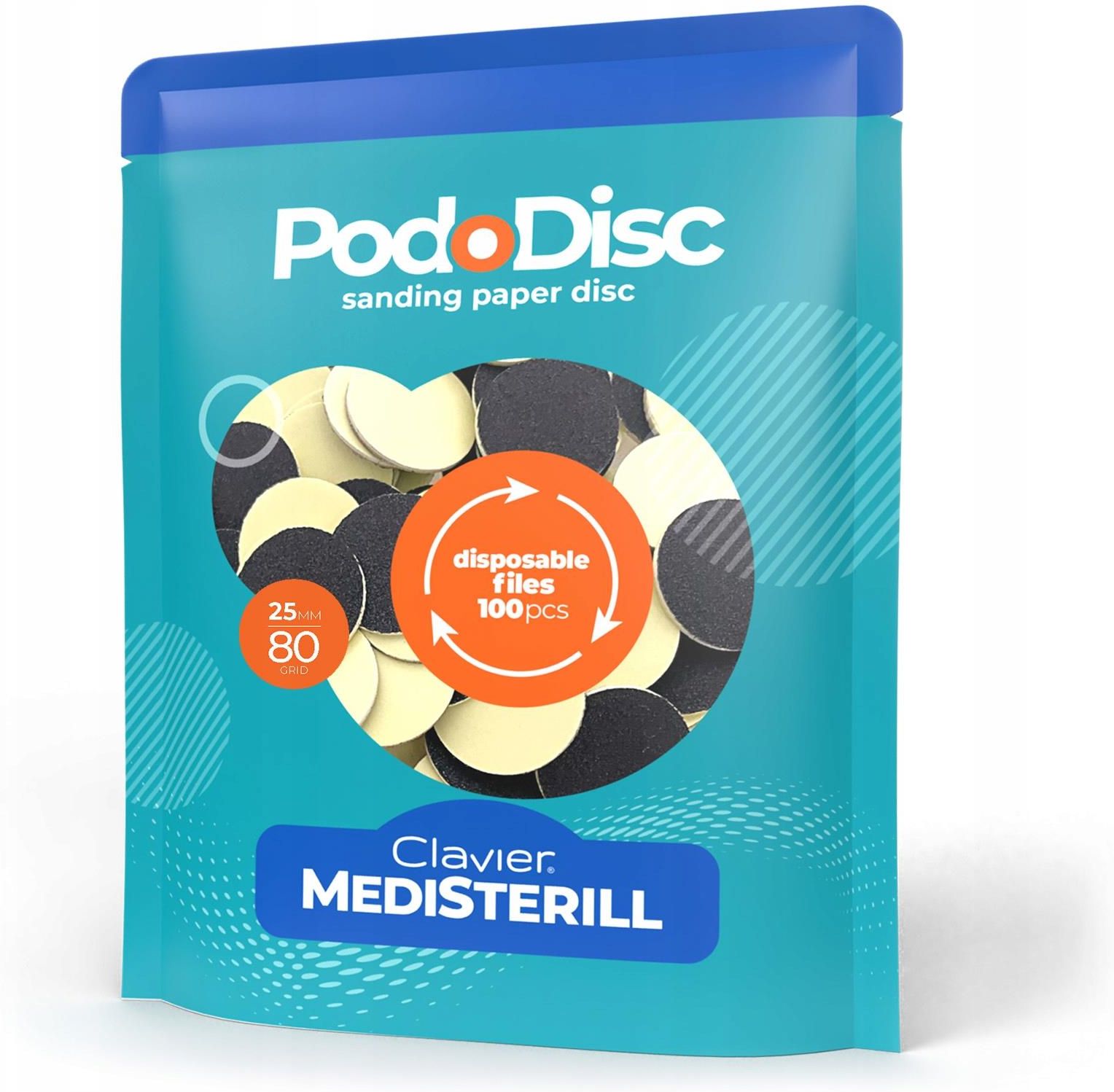 Czym są i do czego służą czarne nakładki ścierne na nośnik Pododisc CLAVIER? Czarne, wymienne nakładki ścierne o ziarnistości 80 grit, 50szt.,rozmiar L - 25mm, na nośnik Pododisc. Okrągłe, trwałe, samoprzylepne podkłady mają mocną podstawę klejącą, która niezawodnie utrzymuje materiał ścierny na metalowej powierzchni nośnika, uniemożliwiając jego ślizganie się lub oderwanie. Materiał użyty do ich wykonania cechuje wysoka jakość – jest odporny na ścieranie i wilgoć, nie kruszy się podczas pracy, pozwala zmniejszyć nacisk frezu na stopę, co umożliwia zarazem szybkie usunięcie zrogowaciałego naskórka oraz delikatną obróbkę skóry. Ogromną zaletą wymiennych nakładek ściernych na PodoDisc jest odporność materiału na wilgoć, dzięki czemu możesz stosować je z wodą, bez ryzyka odklejenia się nakładki od podstawy. Pozwalają również na pracę ze stopami, które zostały wstępnie obrobione różnymi środkami keratolitycznymi, zmiękczającymi płynami lub piankami. Jednorazowe nakładki ścierne na PodoDisc sprawiają, że zabieg jest bezpieczny i higieniczny. Czystość, nieinwazyjność i higiena zabiegów manicure oraz pedicure to podstawa! Czystość, nieinwazyjność i higiena zabiegów są zawsze na pierwszym miejscu, zarówno dla profesjonalistki wykonującej zabieg, jak i klienta. Jednorazowe pilniki, nakładki i materiały ścierne są nieodzownym elementem wyposażenia każdego stanowiska pracy. Ze względu na łatwość użycia i zgodność z zasadami higieny, wciąż zyskują na popularności. Jednorazowe nakładki ścierne na Pododisc gwarantują bezpieczny i higieniczny pedicure dla każdego klienta. Świetnie sprawdza się do obrabiania całej stopy, miejscowych modzeli, szorstkiej skóry na palcach, czy w przypadku polerowania płytki paznokcia. Narzędzie gwarantuje bezpieczny i higieniczny pedicure dla każdego klienta, gdyż od razu po zabiegu naklejka ścierna zostaje wyrzucona, a stalowa baza jest dokładnie zdezynfekowana i wysterylizowana. Pododisc jest nieocenionym pomocnikiem w codziennej pracy pedicurzystów i podologów. Zalety nakładek ściernych są wygodne w użyciu, można je łatwo nakładać na dysk bazowy; mają mocną podstawę klejącą, która niezawodnie utrzymuje materiał ścierny na metalowej powierzchni nośnika; są odporne na ścieranie i wilgoć, nie ślizgają się i nie zsuwają; materiał ścierny nie kruszy się podczas pracy; nie pęcznieją w kontakcie z wodą; są jednorazowe – po użyciu należy je wyrzucić; gwarantują bezpieczny pedicure dla każdego klienta. Środki ostrożności ⚠️ Przechowywać w miejscu niedostępnym dla dzieci. Nie stosować w przypadku uszkodzeń lub chorób paznokci i okolic. Używać zgodnie z przeznaczeniem Przeciwwskazania - jakiekolwiek zmiany chorobowe paznokci lub ich okolicy.