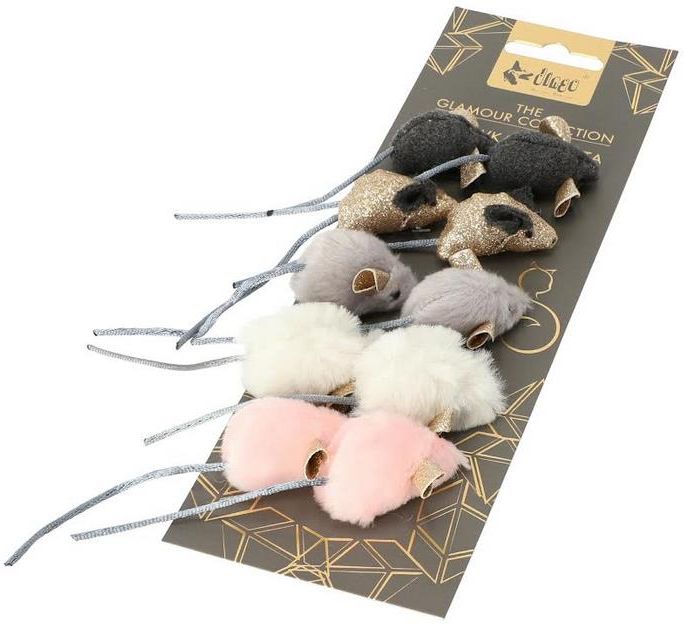 ZESTAW MYSZEK DLA KOTA "GLAMOUR" BLISTER 10 SZT. DINGO Zestaw myszek dla kota GLAMOUR – 10 szt. Zabawa z kotem to nie tylko rozrywka, ale także istotny element wspierający jego rozwój psychiczny i fizyczny. Zestaw myszek GLAMOUR to idealna propozycja dla każdego kociego opiekuna, który chce zadbać o aktywność swojego pupila, wzmacniając przy tym ich więź. Myszki te pobudzają instynkt łowiecki, co pomaga kotu rozwijać zmysły, zwinność oraz naturalne umiejętności. ZALETY ZESTAWU MYSZEK DLA KOTA GLAMOUR: Idealny rozmiar Myszki mają optymalną wielkość, co sprawia, że Twój kot z łatwością będzie je łapać, nosić w pyszczku i podrzucać. To idealny rozmiar dla każdego kota! Atrakcyjny design Kolorowe myszy ze złotymi uszami w stylu Glamour przyciągają uwagę i zachęcają do zabawy nawet najbardziej leniwe koty. Ich błyszczące uszka dodają elegancji i sprawiają, że zabawa staje się jeszcze ciekawsza. Zabawa i ruch Dzięki myszkom Twój kot będzie bardziej aktywny, co ma pozytywny wpływ na jego kondycję fizyczną i psychiczną, szczególnie u kotów domowych, które potrzebują dodatkowej motywacji do ruchu. Idealne na prezent Myszki są zapakowane w ozdobny blister, co czyni je świetnym wyborem na prezent dla każdego właściciela kota. ZAWARTOŚĆ ZESTAWU: 2 myszki szare ze złotymi uszami, długość myszki: 4 cm, ogon: 8 cm 2 myszki białe ze złotymi, brokatowymi uszami, długość myszki: 5,5 cm, ogon: 8 cm 2 myszki czarne ze złotymi uszami, długość myszki: 4 cm, ogon: 8 cm 2 myszki różowe ze złotymi uszami, długość myszki: 5,5 cm, ogon: 8 cm 2 myszki złote z czarnymi uszami, długość myszki: 4 cm, ogon: 8 cm Wybierz zestaw myszek GLAMOUR dla swojego kota i zadbaj o jego codzienną dawkę aktywności oraz radości!