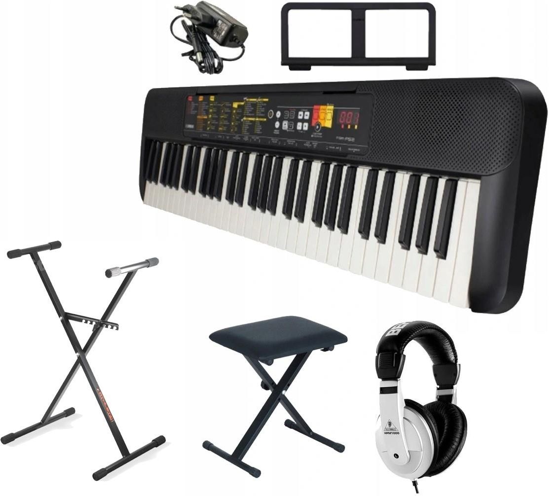 KEYBOARD YAMAHA PSR-F52 +STATYW +ŁAWA +SŁUCHAWKI W zestawie, tak jak na zdjęciu głównym, do instrumentu dołączony jest zasilacz i pulpit nutowy. Yamaha PSR-F52 PSR-F52 to idealny keyboard dla osób, które chcą nauczyć się grać. Posiada wszystkie niezbędne funkcje, aby rozpocząć przygodę z muzyką. …