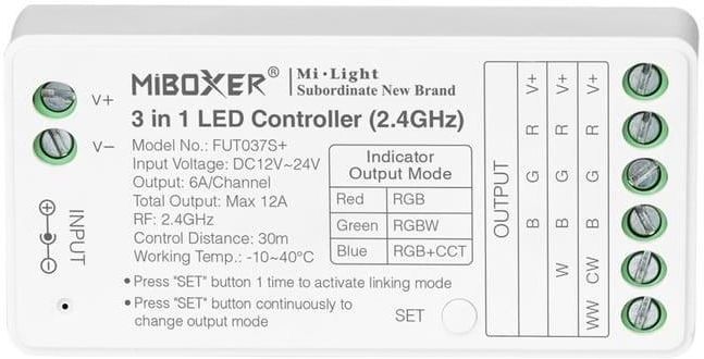 Sterownik kontroler LED 3w1 12/24V 12A Milight FUT037S+ Witaj w naszym sklepie internetowym, gdzie prezentujemy nowoczesny Sterownik kontroler LED 3w1 Milight FUT037S+. Ten zaawansowany kontroler LED jest idealnym rozwiązaniem do obsługi źródeł światła RGB, RGBW oraz RGB+CCT. Pozwala on na …