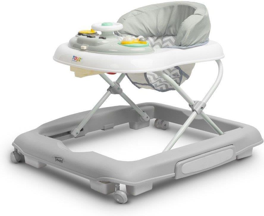 Timon to uniwersalny chodzik z funkcją bujaczka. Wyróżnia się ciekawą kolorystyką i komfortem użytkowania. Dzięki wyjątkowej konstrukcji można go szybko zamienić w bujaczek, łatwo wyregulować wysokość siedziska oraz złożyć po zakończonej zabawie. Chodzik jest wyposażony w panel dźwiękowy na baterie oraz manualne zabawki, które gwarantują radosną zabawę. Najważniejsze cechy 2 w 1 – chodzik może pełnić funkcję bujaczka, panel dźwiękowy, który można wypiąć i który zawiera szereg zabawek manualnych, wyprofilowane siedzisko i usztywnione oparcie zapewniające prawidłowe ułożenie dziecka, możliwość złożenia chodzika na płasko, możliwość dopasowania wysokości siedziska do wzrostu dziecka – w zakresie od 22 cm do 26 cm, przednie skrętne kółka, które ułatwiają swobodne manewrowanie, gumowe stopery zapobiegające wjechaniu na nierówny teren czy spadnięciu z wysokiego progu, jasną instrukcję i prosty montaż,