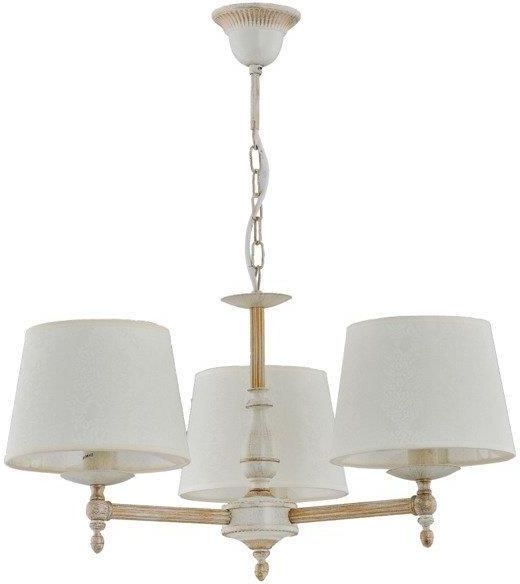 ALFA Sosnowscy - Żyrandol z abażurami ROKSANA WHITE - kod produktu: 18533 Ilość punktów światła: 3 Kolor: Biały antyczny Dodatkowy kolor: Szary Przeznaczenie: Salon, Sypialnia, Przedpokój, Kuchnia, Lokal Rodzaj żarówki / źródła światła: E14 Maksymalna moc na punkt świetlny [W]: 40 Styl: Klasyczny …