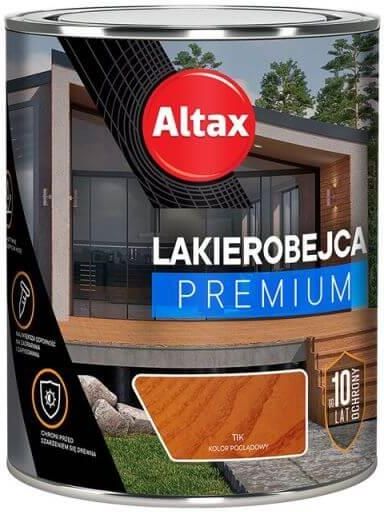 ALTAX LAKIEROBEJCA PREMIUM DO 10 LAT OCHRONNY POJEMNOŚĆ: 0,75L KOLOR: tik Zabezpieczy, ochroni drewno przed działaniem warunków atmosferycznych, zachowa kolor na lata, a to wszystko nadając satynowego wykończenia i podkreślając jego rysunek. ALTAX LAKIEROBEJCA PREMIUM 10 LAT OCHRONNA DO DREWNA TIK …