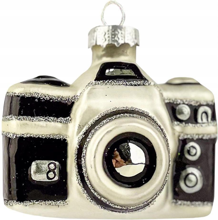 Bombka retro - Aparat Bombka Aparat to oryginalny sposób ozdobienia choinki. Bombka wykonana ze szkła. Posiada metalowy zaczep. Ze względu na ręczne wykonanie bombki mogą się nieznacznie różnić. Wymiary: wysokość: 6,5 cm długość: 7 cm Folkstar