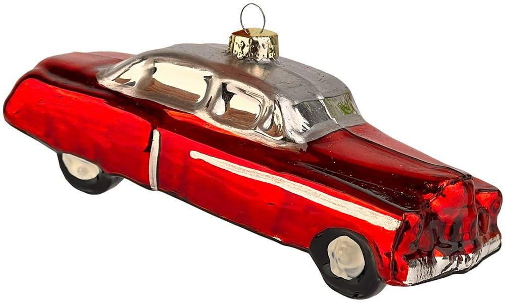 Bombka retro - Auto Bombka Auto to oryginalny sposób ozdobienia choinki. Bombka wykonana ze szkła. Posiada metalowy zaczep. Ze względu na ręczne wykonanie bombki mogą się nieznacznie różnić. Wymiary: wysokość: ok. 4,5 cm szerokość: ok. 12 cm Folkstar