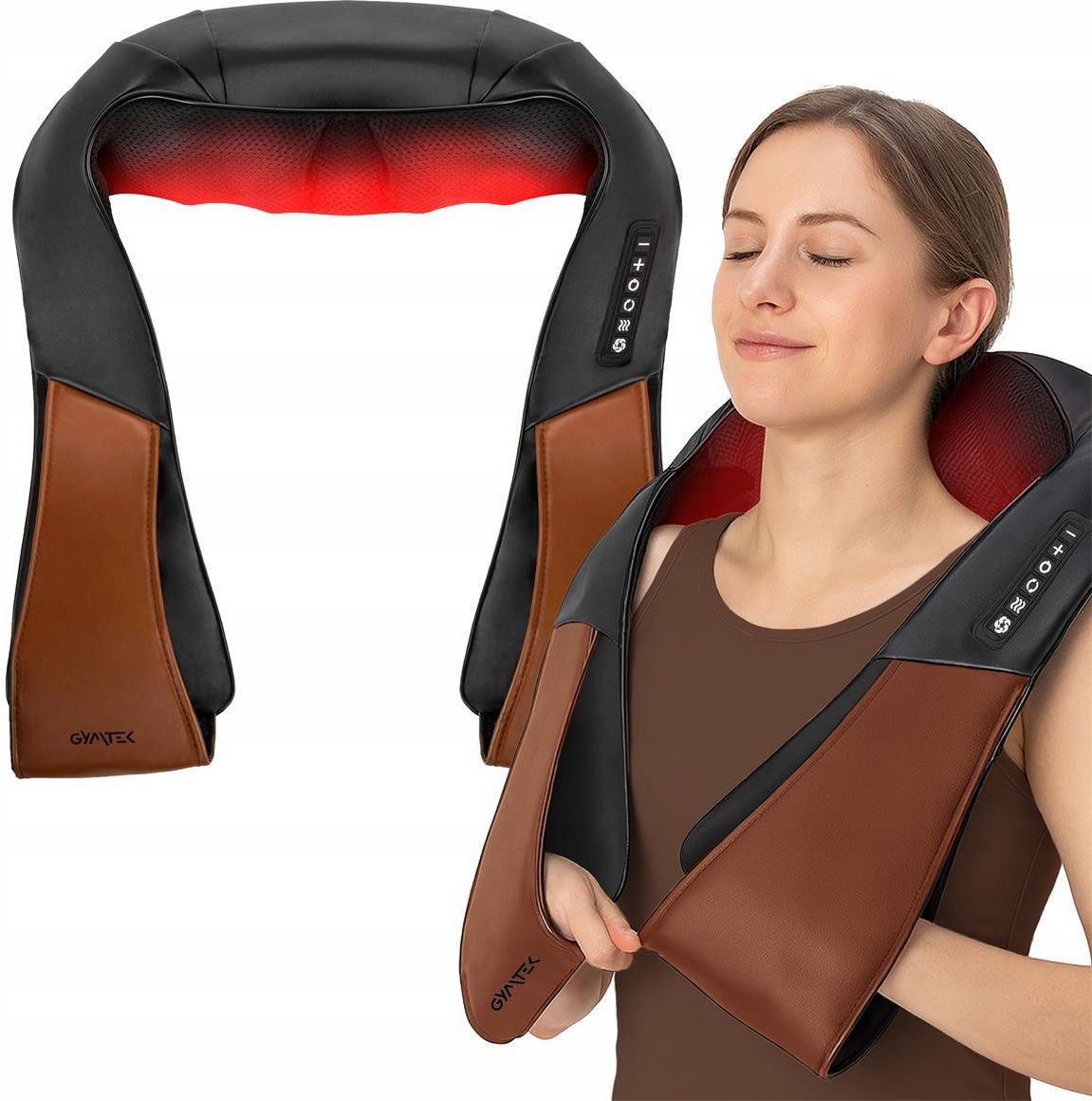 Gymtek to marka z wieloletnim doświadczeniem na rynku sprzętu fitness, ceniona za innowacyjne rozwiązania i trwałość swoich produktów. Zastosowane technologie konstrukcyjne gwarantują wysoki komfort użytkowania oraz trwałość sprzętu, natomiast starannie dobrane materiały i dopracowany design przekładają się na jakość i efektywność każdej sesji treningowej. Zaufanie, jakim klienci obdarzają markę Gymtek, wynika z ich wieloletnich pozytywnych doświadczeń oraz satysfakcji z użytkowania sprzętu. Liczne opinie zadowolonych użytkowników potwierdzają wysoką jakość i niezawodność produktów. Poznaj masażer karku Shiatsu Gymtek Masażer Shiatsu Gymtek to funkcjonalne urządzenie, które pozwala cieszyć się relaksującym masażem bez wychodzenia z domu. Zastosowany system Thermo Flex z 16 punktami masującymi i technologią podczerwieni skutecznie rozluźnia mięśnie, poprawia krążenie i wspiera regenerację. Możliwość zasilania z gniazdka lub samochodu sprawia, że sprawdzi się zarówno w domu, jak i w podróży. Trzy poziomy intensywności oraz uchwyty na ręce umożliwiają dostosowanie masażu do własnych preferencji. Lekka i kompaktowa konstrukcja, wykonana z trwałych materiałów, gwarantuje wygodne użytkowanie i estetyczny wygląd. Najważniejsze cechy Thermo Flex System: To aż 16 punktów masujących z technologią podczerwieni, które intensywnie i równomiernie rozluźniają spięte mięśnie, pobudzają krążenie i wspomagają regenerację. Uniwersalne zastosowanie: Dzięki zasilaniu sieciowemu i samochodowemu masażer może być używany w dowolnym miejscu – w domu, w biurze czy podczas podróży. Regeneracja i relaks dla każdego: Uniwersalne wsparcie w regeneracji i odprężeniu dla osób aktywnych, siedzących, podróżujących, seniorów i każdego, kto potrzebuje chwili relaksu. Regulowana intensywność masażu: Udostępniono 3 poziomy mocy, a specjalne uchwyty na ręce umożliwiają łatwe dostosowanie siły nacisku do indywidualnych potrzeb. Nowoczesna, kompaktowa konstrukcja: Lekka forma i wysokiej jakości materiały zapewniają wygodę użytkowania, trwałość oraz łatwe przechowywanie – zarówno w domu, jak i w podróży. Wysoka jakość wykonania: W produkcji zastosowano trwałe tworzywo PU, ekoskórę oraz siatkę, co zapewnia nowoczesny wygląd, komfort użytkowania oraz odporność na codzienne zużycie. Thermo Flex System Innowacyjny system masażu wykorzystuje 2 głowice masujące z 16 punktami masującymi, zapewniając intensywne i równomierne działanie na napięte partie ciała. Dzięki funkcji podczerwieni i nagrzewaniu do 42°C za pomocą 6 lampek grzewczych, masaż wspomaga mikrokrążenie, przyczyniając się do szybszej regeneracji i wyraźnego uczucia rozluźnienia. Najważniejsze korzyści Skuteczne rozluźnienie mięśni: 16 punktów masujących pracuje symetrycznie, obejmując szeroki obszar ciała i zapewniając zbalansowany nacisk. To skutecznie redukuje napięcia mięśniowe i przynosi uczucie ulgi już po kilku minutach. Wsparcie dla krążenia i regeneracji: Promieniowanie podczerwone łagodnie podgrzewa tkanki, co wpływa na rozszerzenie naczyń krwionośnych i poprawę przepływu krwi – organizm szybciej się regeneruje, a mięśnie odzyskują sprawność. Większy komfort użytkowania: Automatyczna zmiana kierunku pracy głowic co 2 minuty lub po naciśnięciu przycisku odwzorowuje rytmiczne, naturalne ruchy dłoni. To zapobiega jednostronnemu naciskowi i zwiększa poczucie relaksu podczas masażu. Uniwersalne zastosowanie Dzięki zasilaniu sieciowemu i samochodowemu urządzenie może być używane w niemal każdym miejscu – w domu, biurze czy podczas podróży. Sprawdza się nie tylko w przypadku masażu karku i ramion, ale również pleców, ud, łydek czy stóp, co czyni je praktycznym narzędziem do regeneracji po wysiłku fizycznym, stresującym dniu lub intensywnej pracy. Najważniejsze korzyści Mobilność dzięki podwójnemu zasilaniu: Możliwość podłączenia do standardowego gniazdka lub gniazda zapalniczki samochodowej sprawia, że masaż dostępny jest zarówno w domu, jak i w trasie – bez konieczności ładowania akumulatora. Zastosowanie na różne partie ciała: Ergonomiczna konstrukcja oraz elastyczne ramiona urządzenia pozwalają skutecznie masować nie tylko kark i ramiona, ale również dolne partie pleców, uda, łydki i stopy. Ulga w dowolnym momencie dnia: Idealne rozwiązanie po treningu, długim dniu pracy lub w chwilach stresu – masaż poprawia krążenie, rozluźnia mięśnie i wspiera szybszą regenerację. Regeneracja i relaks dla każdego Uniwersalne wsparcie w odprężeniu i regeneracji – niezależnie od wieku, trybu życia czy poziomu aktywności. Dla pracujących przy komputerze: Regularne stosowanie masażu w okolicach karku i barków pomaga zredukować napięcie mięśni wynikające z długotrwałej pracy siedzącej i przeciwdziała sztywności szyi. Dla kierowców i osób w podróży służbowej: Masaż lędźwi i dolnych części pleców łagodzi napięcie po wielu godzinach spędzonych za kierownicą, poprawia krążenie i wspiera komfort w czasie jazdy. Dla osób aktywnych fizycznie: Skuteczna pomoc w regeneracji mięśni po treningu – masaż pobudza mikrokrążenie i przyspiesza usuwanie napięć powstałych po wysiłku. Dla seniorów: Delikatne, rytmiczne ruchy masażera poprawiają ukrwienie i pomagają w redukcji napięcia mięśniowego, wspierając ogólne samopoczucie. Dla rodziców i opiekunów: Możliwość szybkiego masażu nawet w krótkich przerwach – idealne rozwiązanie na chwilę relaksu między codziennymi obowiązkami. Regulowana intensywność masażu Urządzenie oferuje 3 poziomy mocy, co pozwala dopasować intensywność masażu do aktualnych potrzeb – od delikatnego rozluźnienia po głęboki, intensywny ucisk. Uchwyty na ręce umożliwiają manualną regulację siły nacisku, a panel z 6 przyciskami ułatwia stero