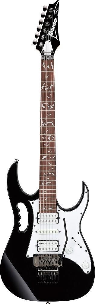 IBANEZ JEMJR-BK Gitara elektryczna Ibanez, sygnatura Steve Vai Specyfikacja Seria: Steve Vai Signature; Liczba strun: 6; Kolor: Czarny; Korpus: Meranti; Wykończenie: Połysk; Gryf: Klon; Skala: 648 mm; Siodełko: 43 mm; Podstrunnica: Jatoba; Znaczniki: Tree of Life; Progi: 24; Przetwornik (gryf): …