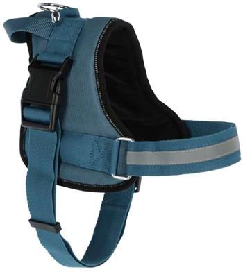 Szelki dla psa Maestro 2.0, 57-77 cm x 20 mm, turkusowe, Kerbl wewnętrzna strona wykonana z oddychającego, przyjaznego dla skóry i miękkiego poliestru optymalny rozkład nacisku dzięki odciążającej wyściółce wbudowany uchwyt do trzymania i podnoszenia z miejscem na adres chromowane sprzączki i …