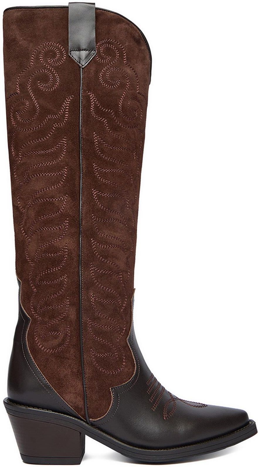 Dodaj do swojej garderoby odrobinę dzikiego zachodu z damskimi kowbojkami marki Badura! Wykonane z połączenia skóry naturalnej zamszowej i licowej, te buty zachwycają wyjątkowym stylem i trwałością. Szpiczasty nosek oraz stabilny słupek nadają im elegancji i kobiecego charakteru, jednocześnie …