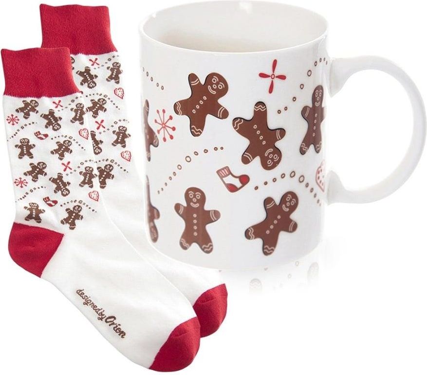 Kubek ze skarpetkami 350 ml Świąteczny kubek z zestawem skarpet - Zestaw składa się z kubka o pojemności 350 ml oraz pary miękkich skarpet. To praktyczny i dekoracyjny komplet idealny do codziennego użytku. Kubek ma wymiary 13 x 8,5 x 9,5 cm. Skarpetki są odpowiednie na rozmiar 38-40. Wykonany z ceramiki - Kubek wykonano z najwyższej jakości ceramiki w białym kolorze z efektownym dekorem w postaci piernikowych ludzików. Skarpety wykonane są w 70% bawełny, 27% poliamidu i 3% elastanu. Skarpetki są miękkie i wygodne w kolorze białym i czerwonym z motywem piernikowego ludzika. Atrakcyjny motyw pierniczków - Kubek oraz skarpety zdobi uroczy motyw piernikowych ludzików, który nadaje zestawowi wyjątkowego i radosnego charakteru. Wygodne korzystanie - Kubek posiada klasyczne ucho, które zapewnia wygodny chwyt, co zapewni komfortowe korzystanie podczas picia kawy, herbaty lub innych napojów. Kubek nadaje się do podgrzewania napojów w mikrofalówce. Skarpetki można prać w temperaturze do 30°C. Świetny pomysł na upominek - Zestaw stanowi wyjątkowy i praktyczny upominek, który łączy w sobie funkcjonalność i uroczy design. Idealnie sprawdzi się jako drobny podarunek dla bliskich w okresie świątecznym, na Mikołajki, zimowe spotkania rodzinne czy jako miły gest dla współpracowników. Zestaw składający się z kubka oraz miękkich skarpet z motywem piernikowego ludzika. Zestaw jest świetnym pomysłem na upominek dla bliskich w formie drobnego prezentu, który ucieszy każdego miłośnika zimowych akcentów. Oryginalny produkt czeskiej marki Orion. Wyprodukowano zgodnie z europejskimi standardami.