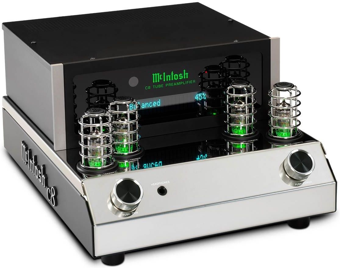 McIntosh C8 Wzmacniacze audio to kluczowe elementy każdego zaawansowanego systemu dźwiękowego. Oferują one nie tylko zwiększenie mocy sygnału audio, ale również poprawę jakości dźwięku, co jest niezbędne dla miłośników muzyki i kinomanów. Dziś przyjrzymy się bliżej przedwzmacniaczowi McIntosh C8, który wyróżnia się swoją wyjątkową konstrukcją oraz zaawansowanymi funkcjami. Zalety konstrukcji i typ wzmacniacza Przedwzmacniacz McIntosh C8 to urządzenie typu lampowe, co oznacza, że wykorzystuje lampy elektronowe do wzmacniania sygnału audio. Tego rodzaju wzmacniacze są cenione za swoją charakterystyczną, ciepłą barwę dźwięku. McIntosh C8 posiada przemysłową konstrukcję z otwartą obudową, podobną do popularnych modeli od tego producenta, takich jak Mc275 oraz MA252. Dzięki temu oferuje on nie tylko doskonały dźwięk, ale również estetyczny wygląd. Specyfikacje techniczne i liczba kanałów McIntosh C8 to przedwzmacniacz dwukanałowy (2-kanałowy), co czyni go idealnym wyborem do systemów stereo oraz bardziej zaawansowanych konfiguracji audio. Zasilany jest czterema lampami 12AX7A umieszczonymi w stylowych klatkach ochronnych, co dodatkowo podkreśla jego wyjątkowy design. Moc wyjściowa i impedancja Przedwzmacniacz McIntosh C8 oferuje maksymalne napięcie wyjściowe wynoszące 16V RMS (zbalansowane) oraz 8V RMS (niezbalansowane). Te parametry zapewniają wysoką jakość dźwięku i umożliwiają dopasowanie urządzenia do różnych zestawów głośnikowych. Impedancja wejściowa wynosi odpowiednio 44 kΩ dla sygnałów symetrycznych oraz 22 kΩ dla sygnałów niesymetrycznych. Dostępne wejścia i wyjścia McIntosh C8 jest wyposażony w szeroką gamę wejść i wyjść, które pozwalają na podłączenie różnorodnych źródeł audio. Posiada 1 zbalansowane wejście, 2 niezbalansowane wejścia analogowe, 1 wejście gramofonowe z ruchomą cewką (MC), 1 wejście gramofonowe z ruchomym magnesem (MM), które są regulowane, oraz opcję podłączenia cyfrowego modułu DA2. W zakresie wyjść znajdziemy 1 zbalansowane wyjście oraz 2 niezbalansowane wyjścia, z których jedno może być skonfigurowane jako wyjście subwoofera. Zalety technologiczne i funkcje dodatkowe Zastosowane technologie w McIntosh C8 zapewniają najwyższą jakość dźwięku oraz szerokie możliwości personalizacji ustawień. Wśród nich znajdziemy: wzmacniacz słuchawkowy high drive, porty power control umożliwiające łatwe włączanie i wyłączanie systemu, wbudowaną funkcję automatycznego wyłączania po 30 minutach braku aktywności, funkcję home theater pass through dla integracji z systemem kina domowego, wbudowane pokrętła do regulacji basów, wysokich tonów oraz balansu. Wymiary i design urządzenia McIntosh C8 wyróżnia się solidną konstrukcją i eleganckim wyglądem. Jego wymiary to 31,2 cm x 19,4 cm x 41,3 cm, a waga wynosi 8,2 kg. Przedni panel wykonany z czarnego szkła ze srebrnymi wykończeniami oraz podświetlanym logo dodaje urządzeniu klasycznego uroku. Dodatkowo obudowa ze stali nierdzewnej wypolerowana na lustrzany połysk sprawia, że przedwzmacniacz ten będzie doskonale prezentować się w każdym wnętrzu.