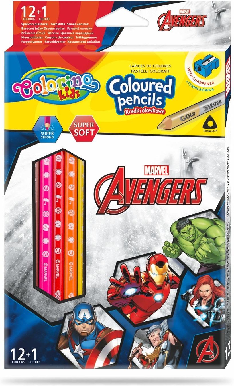 Patio Kredki Ołówkowe Trójkątne Colorino Kids 13 Kolorów 12 Sztuk Z Temperówką Avengers Strumień