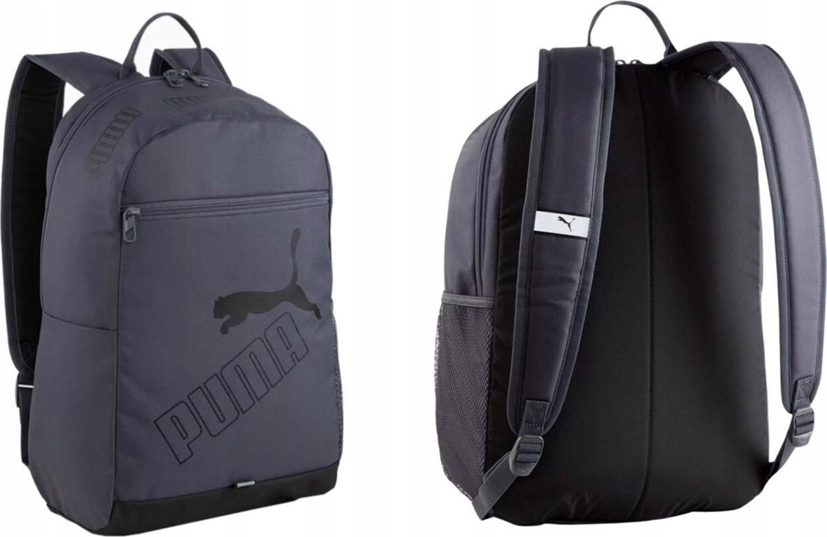 Plecak miejski Puma Phase to pojemny, lekki plecak dla każdego, kto ceni sobie wygodę, funkcjonalność i styl. Klasyczna, prosta konstrukcja, pojemność i wygoda w użytkowaniu- ot cały przepis na sukces. Model Puma Phase II 79952 to plecak, który sprawdzi się przy każdej możliwej okazji. Od wyjścia do szkoły, poprzez całodniową wycieczkę, aż po trening na siłowni. Główna komora plecaka zamykana jest na wysokiej jakości zamek błyskawiczny. W bocznej części plecaka znajduje się także kieszonka stworzona z syntetycznej siateczki wprost idealna do spakowania bidonu lub butelki z wodą. Frontowa część plecaka wyposażona została również w mniejszą kieszonkę, zapinaną na zamek, aby przechowywać w niej takie rzeczy jak klucze, portfel czy telefon. Wyściełane, regulowane szelki zapewniają komfort nawet podczas dłuższego noszenia, dostosowując się do indywidualnych potrzeb użytkownika. Prosty, ale nowoczesny wygląd pasuje zarówno do sportowego, jak i codziennego, casualowego stylu. Cechy produktu: plecak miejski główna komora mieszcząca format A4 dodatkowa wewnętrzna przegroda dodatkowa kieszeń frontowa dodatkowa kieszeń boczna z siateczki mocna pleciona rączka regulowane szelki z miękką wyściółką odblask na szelkach Dane techniczne: pojemność: 20L materiał: 100% poliester waga: 400 g wymiary: 45x 30 x 14 cm Początki firmy sięgają roku 1924. Zaczęło się od produkcji butów. Dzisiaj marka Puma kojarzona jest z topową odzieżą i akcesoriami sportowymi. W ofercie znajdziemy nie tylko plecaki, saszetki biodrowe, torby treningowe, ale także wygodne obuwie i odzież, które sprawdzą się na treningu, w podróży i na co dzień. Bestsellerowe produkty pokochają wszyscy miłośnicy sportowego stylu.