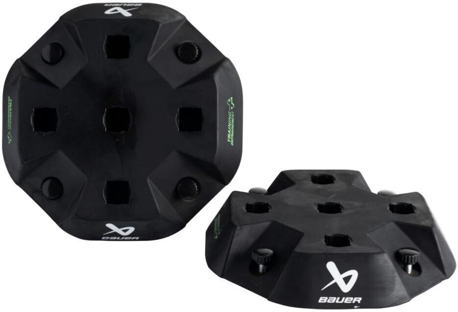 Podstawa systemu treningowego Bauer Modular Rozbuduj swoje centrum treningowe dzięki dodatkowym podstawom modułowego systemu szkoleniowego Bauer Modular. Te solidne podstawy zapewniają stabilną bazę dla narzędzi szkoleniowych, umożliwiając graczom pełne skupienie się na doskonaleniu umiejętności. Główne cechy: Kołki cumownicze: Każda podstawa posiada kołki, które można zakotwiczyć w lodzie lub innych powierzchniach, co zapobiega przesuwaniu się podczas treningu. Konstrukcja bez narzędzi: System montażu nie wymaga dodatkowych narzędzi, a niestandardowa śruba z uchwytem ułatwia szybkie i bezproblemowe ustawienie. Gumowa konstrukcja: Wykonana z gumy, która zapewnia maksymalną stabilność i trwałość, jednocześnie chroniąc ostrza łyżew hokejowych przed uszkodzeniami w przypadku nadepnięcia. Łatwe łączenie: Możliwość łatwego łączenia z różnymi modułowymi elementami szkoleniowymi, co pozwala na rozbudowę zestawu w miarę rozwoju umiejętności. Podstawa systemu treningowego Bauer Modular to doskonałe uzupełnienie każdego zestawu treningowego, zapewniające stabilność i wszechstronność podczas treningów na lodzie.